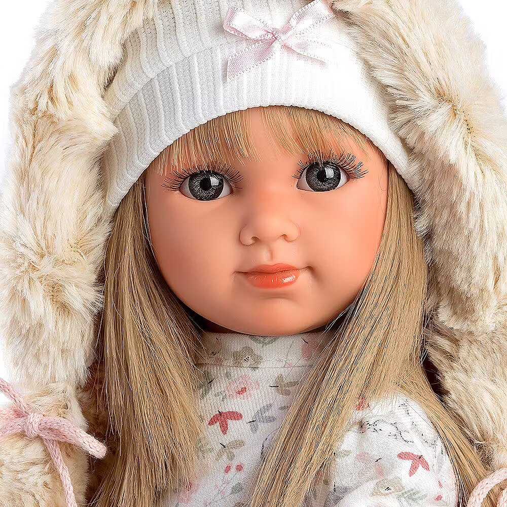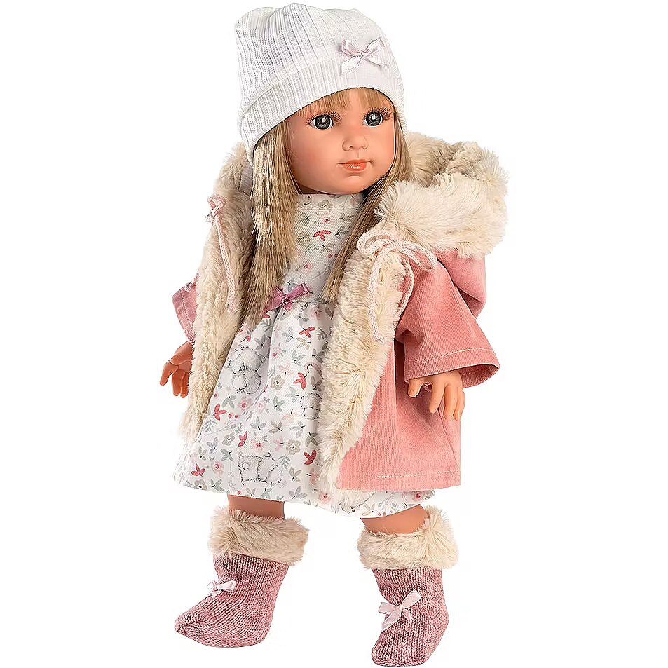 Description - Lalka Elena 35 cm W naszej manufakturze wierzymy, że zabawa jest najlepszą nauką. Dlatego też z wielką miłością tworzymy kultowe lalki Llorens, w 100% ręcznie wykonane, o niepowtarzalnych wzorach. Stosowane przez nas tkaniny pochodzą od renomowanych marek odzieży dziecięcej. Wszystkie lalki Llorens są zgodne z europejskimi przepisami dotyczącymi bezpieczeństwa dzieci, co gwarantuje, że Twoje dzieci będą się bawić w możliwie najbezpieczniejszy sposób. Elena mierząca 35 cm posiada niebieskie oczy, długie rzęsy i piękną, blond fryzurę. Elena ubrana jest w białą sukienkę w owieczki z kokardką. Ponadto lalka ma na sobie różowe buty z kokardkami oraz kurtkę z futrzanym kapturem. Dopełnieniem stylizacji jest czapka z kokardką. Prawdziwy raj dla małych fashionistek. Jej rączki, nóżki i główka zostały wykonane z przyjemnego w dotyku winylu a brzuszek z materiału, wypełniony miękką wyściółką. Lalka została zapakowana w ozdobny karton. Kochamy hiszpańskie lalki Llorens!