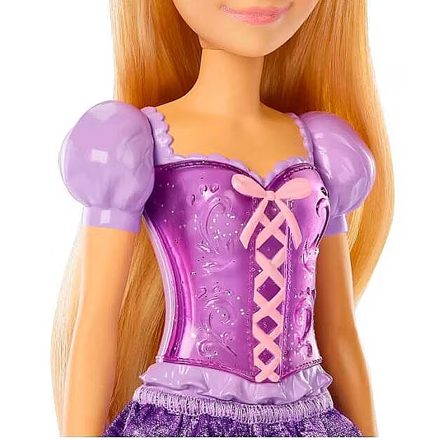 Description - Introducing a Rapunzel doll inspired by the colourful, creative princess from Disney's Tangled. This bend point doll comes with a shimmering outfit and accessories such as shoes and a tiara. Dressed in her iconic style from the movie Rapunzel is ready for any adventure! The doll does not stand alone. Colours and decorative elements may vary. Inspired by the character from Disney's much-loved animated film Tangled, Rapunzel doll is ready to follow her dreams. The bend point doll is dressed in her iconic style from the film, including removable shoes and tiara. The outfit consists of a glitter top and removable skirt with a design unique to Rapunzel. This adorable Disney princess has long hair for fun combing and styling. A perfect gift for children to recreate their favourite moments from the film or make up their own stories. Fans can collect all the Disney Princess dolls for countless magical adventures. Other sets sold separately subject to availability