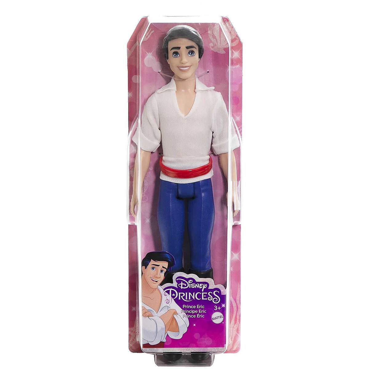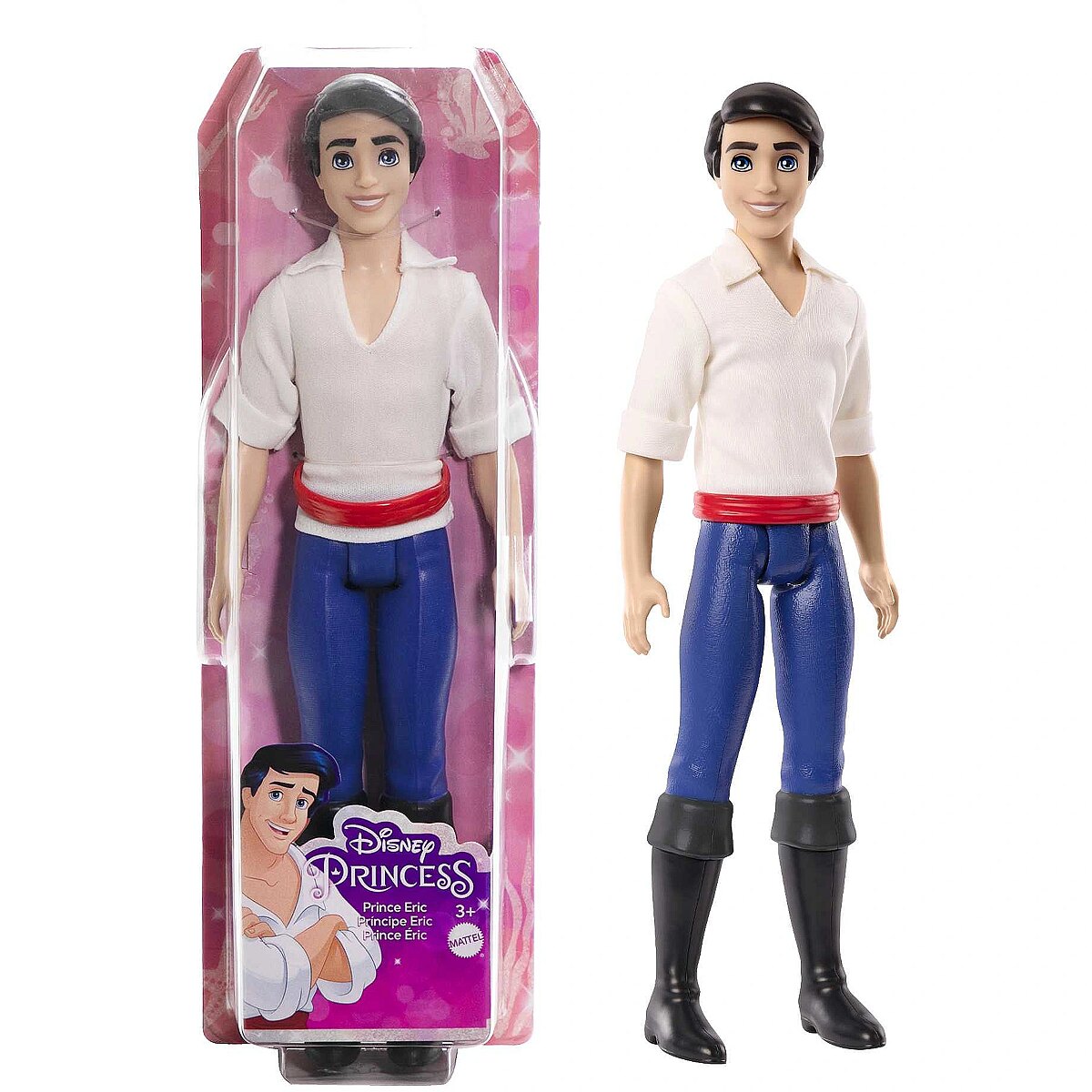 LongSummaryDescription - Disney Princess Prince Eric Fashion Doll in Look Inspired by Disney Movie The Little Mermaid. Doll type: Big doll, Doll's gender: Male, Recommended age (min): 3 yr(s), Suggested gender: Girl. Height: 330 mm, Weight: 150 g. Material: Plastic, Fabric, Product colour: Multicolour