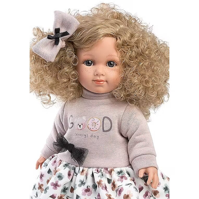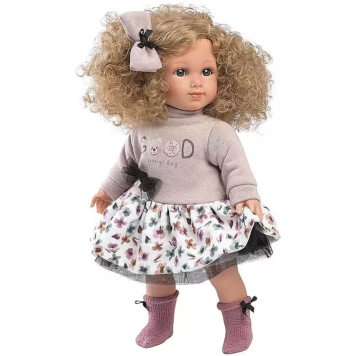 Description - Elena doll 35 cm Manual production of Llorens dolls makes them perfect in every detail. Delicately emphasized beauty, shading, beautiful eyelashes and eyes. Top quality materials. Each doll in the hands of the manufacturer takes on colors and life. Their clothes are made of organic cotton, wool and recycled materials. This is the best gift for your child, fulfilling both educational and fun function. Name: Elena Height: 35 cm Material: cotton tummy, vinyl handles, legs and head The set includes: a five-piece outfit