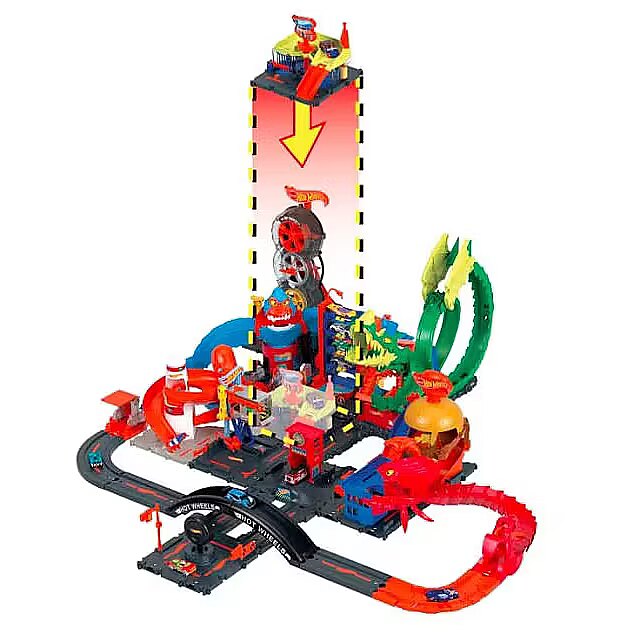 LongDesc - After battling the vicious creatures of Hot Wheels City, hit the car wash to clean off the grime and debris of city living. Turn the logo sign and the car automatically moves through the wash, always visible through the transparent windows. Drive up the ramp to refuel or park, then head off to other adventures. The set connects to other Hot Wheels sets through multiple connection points and comes with one Hot Wheels vehicle for push-around play straight out of the box. Each sold separately, subject to availability. Colours and decorations may vary.