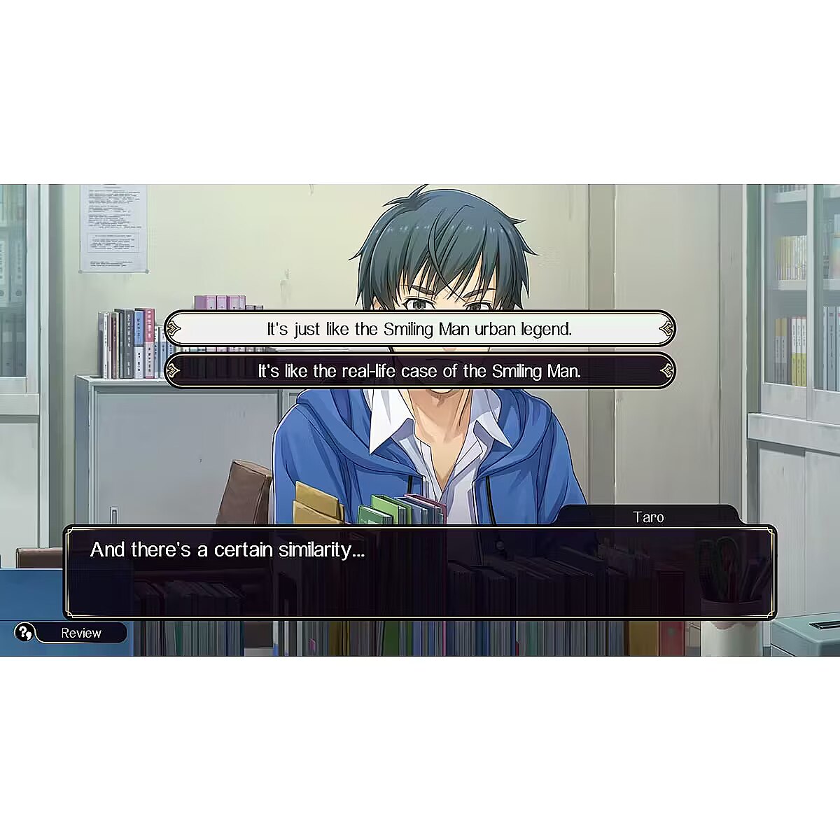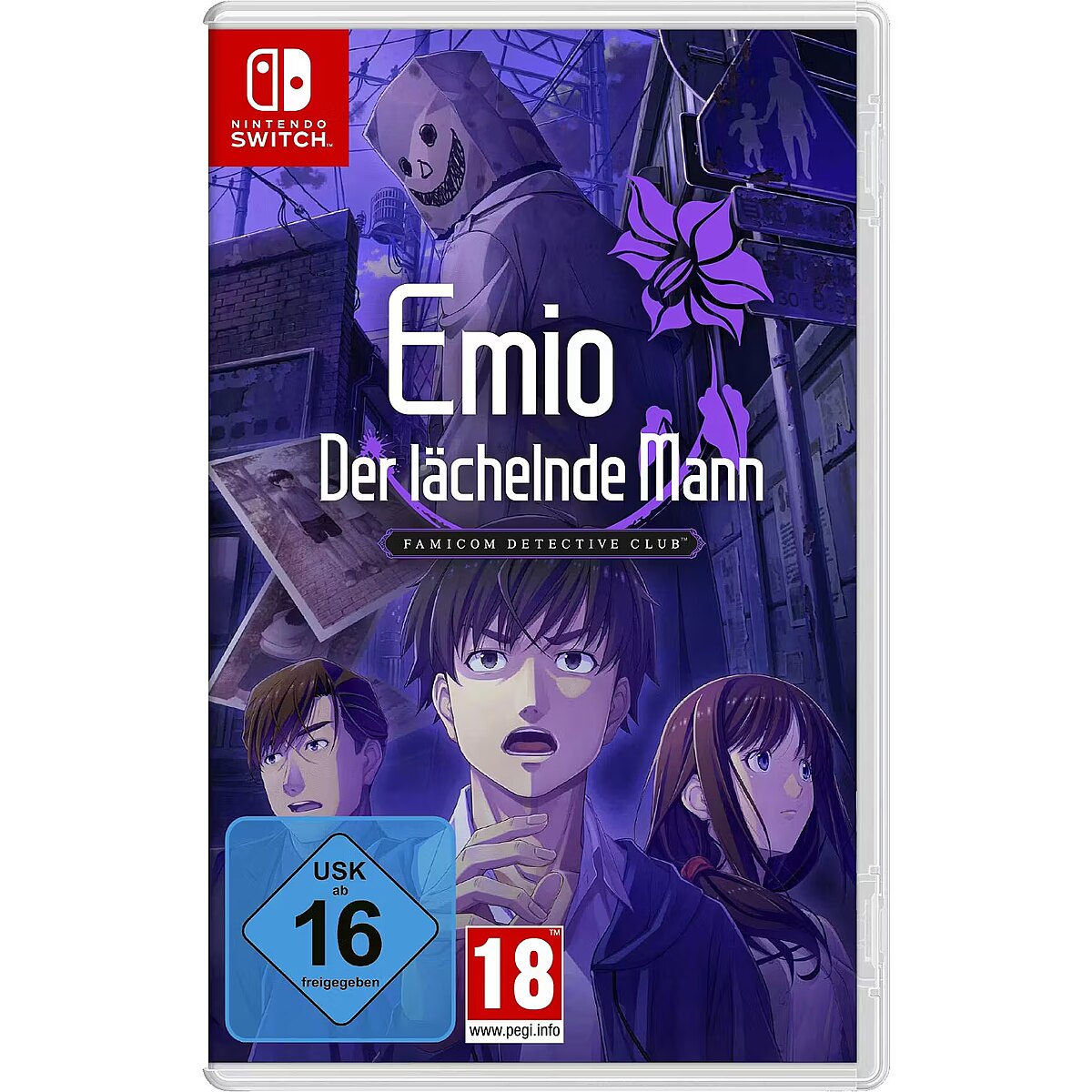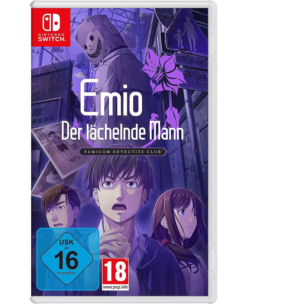 LongDesc - WHO IS EMIO – THE SMILING MAN?Unmask the truth in a dark, twisted thriller for Nintendo Switch: Emio – The Smiling Man: Famicom Detective Club. Solve the tragic murder of a junior high school student, where a creepy clue recalls cold cases from the past and an urban legend about a killer with a disturbing modus operandi.“I CAN GIVE YOU A SMILE THAT WILL LAST FOREVER!”Junior high school student Eisuke Sasaki has been found dead in a chilling fashion, with a smiley-faced paper bag over his head.This unsettling visage bears a striking resemblance to a recurring clue in a string of unsolved murders from 18 years ago – as well as the urban legend Emio, aka the Smiling Man, a serial killer said to grant his victims “a smile that will last forever”.Does the Smiling Man really exist…or is a new culprit continuing on his legacy?As a member of the Utsugi Detective Agency, you’ve been tasked with investigating the events that led to Eisuke Sasaki’s death. Along the way, scrutinise the clues and testimonies you gather for potential connections to the gruesome events of the past.PUT YOUR INVESTIGATIVE INSTINCTS TO THE TESTIt’ll take a keen sleuth to solve this captivating mystery. Interview the victim’s classmates and others connected to the case to gather leads, and travel between crime scenes and locations of interest to comb them for potential clues.If you hit a snag in your investigation and can’t seem to find a way forward, consult your notebook to review your findings thus far. Use every detective trick at your disposal – no matter how farfetched they might seem – to uncover a potential lead.