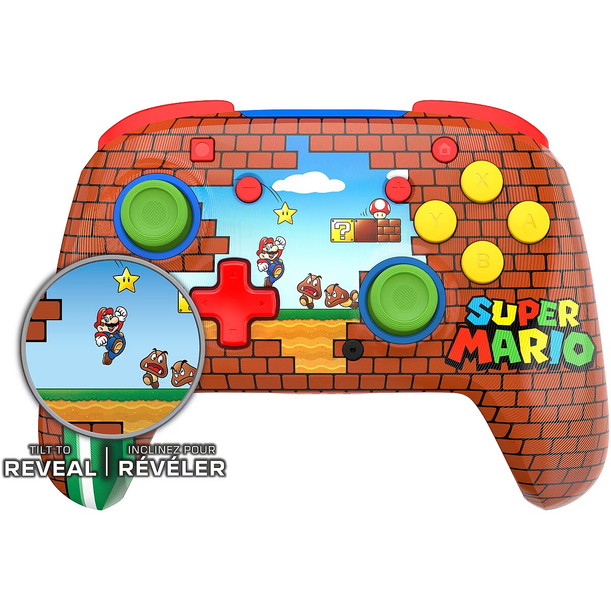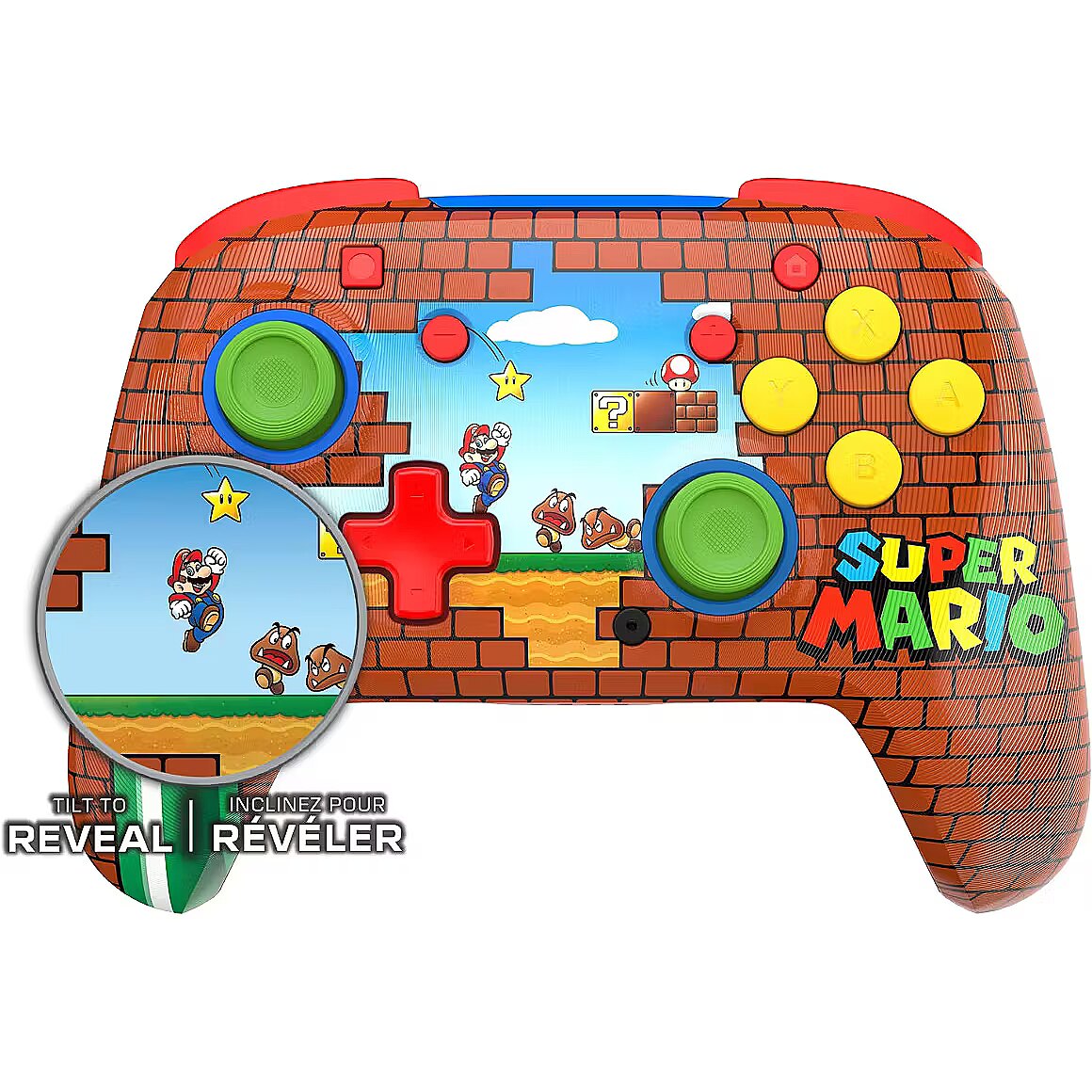 description_en - Unique lenticular Super Mario™ design shifts to reveal a second visual as you move your controller. For long gaming sessions, you will appreciate the rechargeable battery providing up to 40 hours of play and a 30-foot wireless range so you can play comfortably from anywhere in the room. Fully immerse yourself into your favorite games like Mario Kart with built-in motion controls. Two mappable buttons enhance in-game actions. Officially licensed by Nintendo®, play your favorite games across the Nintendo Switch family of consoles. Super Mario™ Design