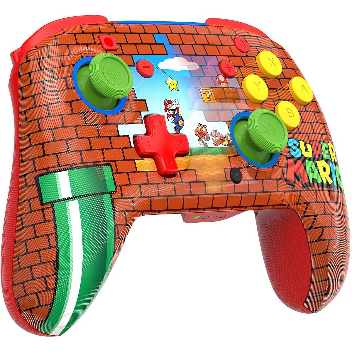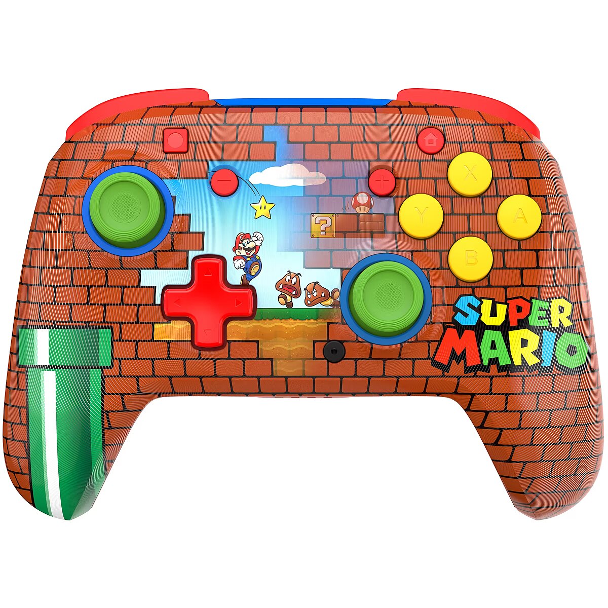 Tähista üht videomängumaailma ikoonilisemat kangelast julge kujundusega, mis on inspireeritud Super Mario™ maailmast. Klassikalised tellisemotiivid ja erksad värvid annavad sinu mänguseadmele silmapaistva ilme, rõõmustades nii pikaajalisi fänne kui ka uusi mängijaid. Juhtmevaba ja taaslaetav