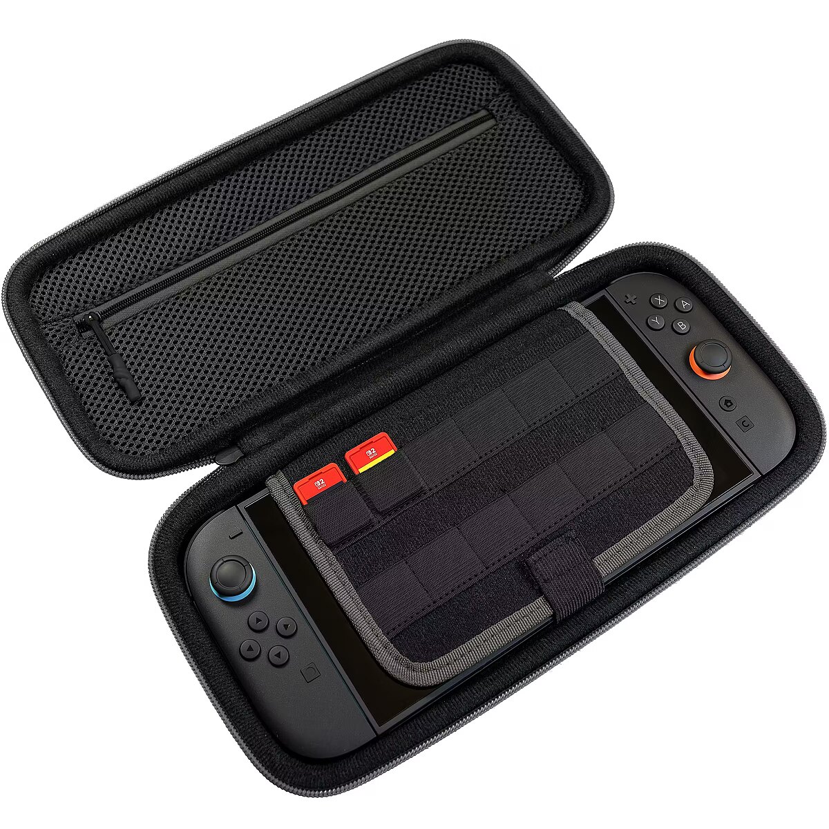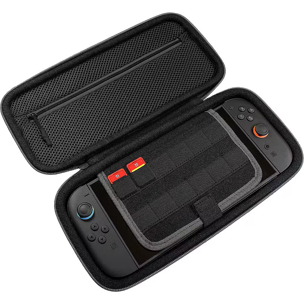 Keep everything organized on the go. Interior features include game card slots and a mesh zippered pocket for storing small accessories like cables, earbuds, or cleaning cloths. Travel-Ready Portability