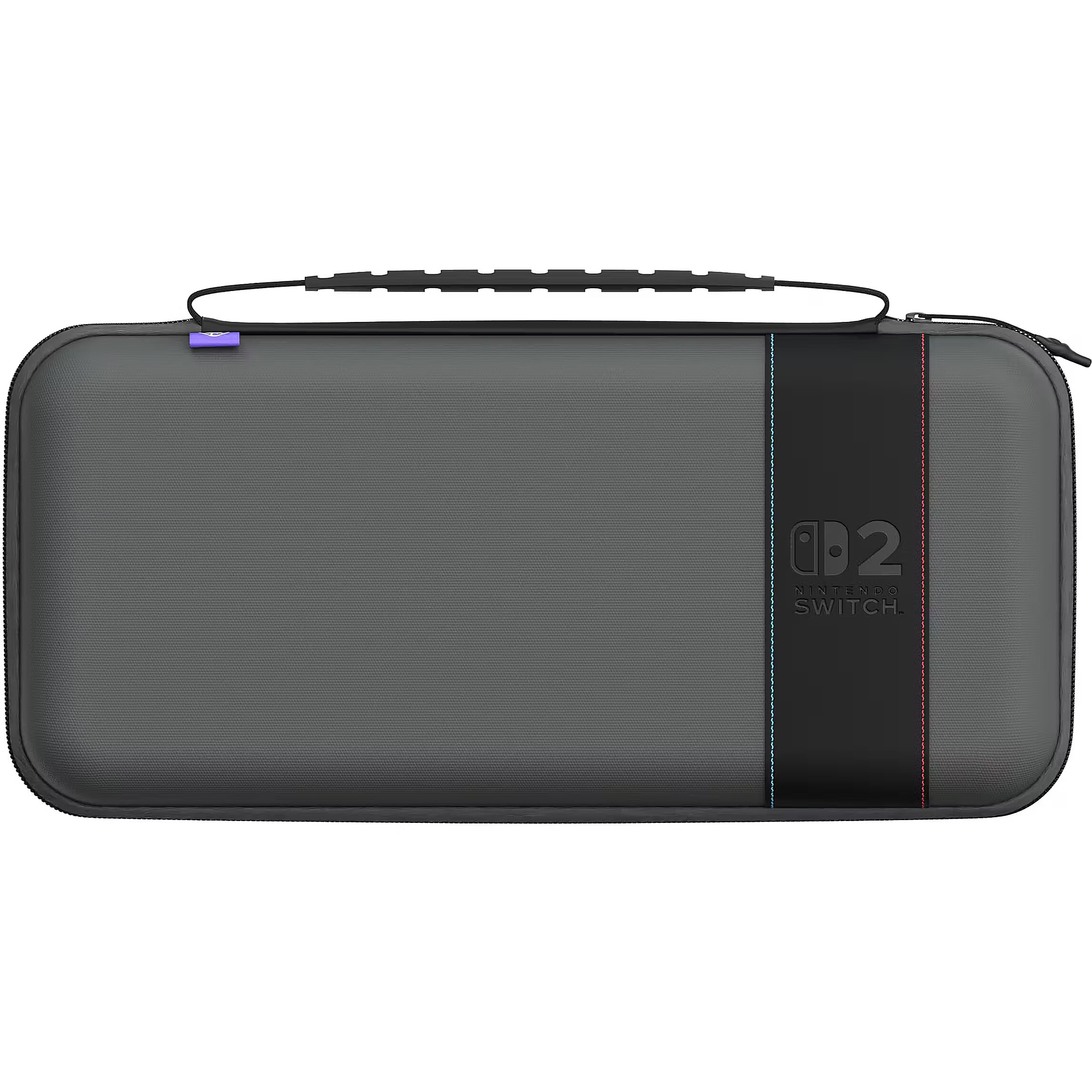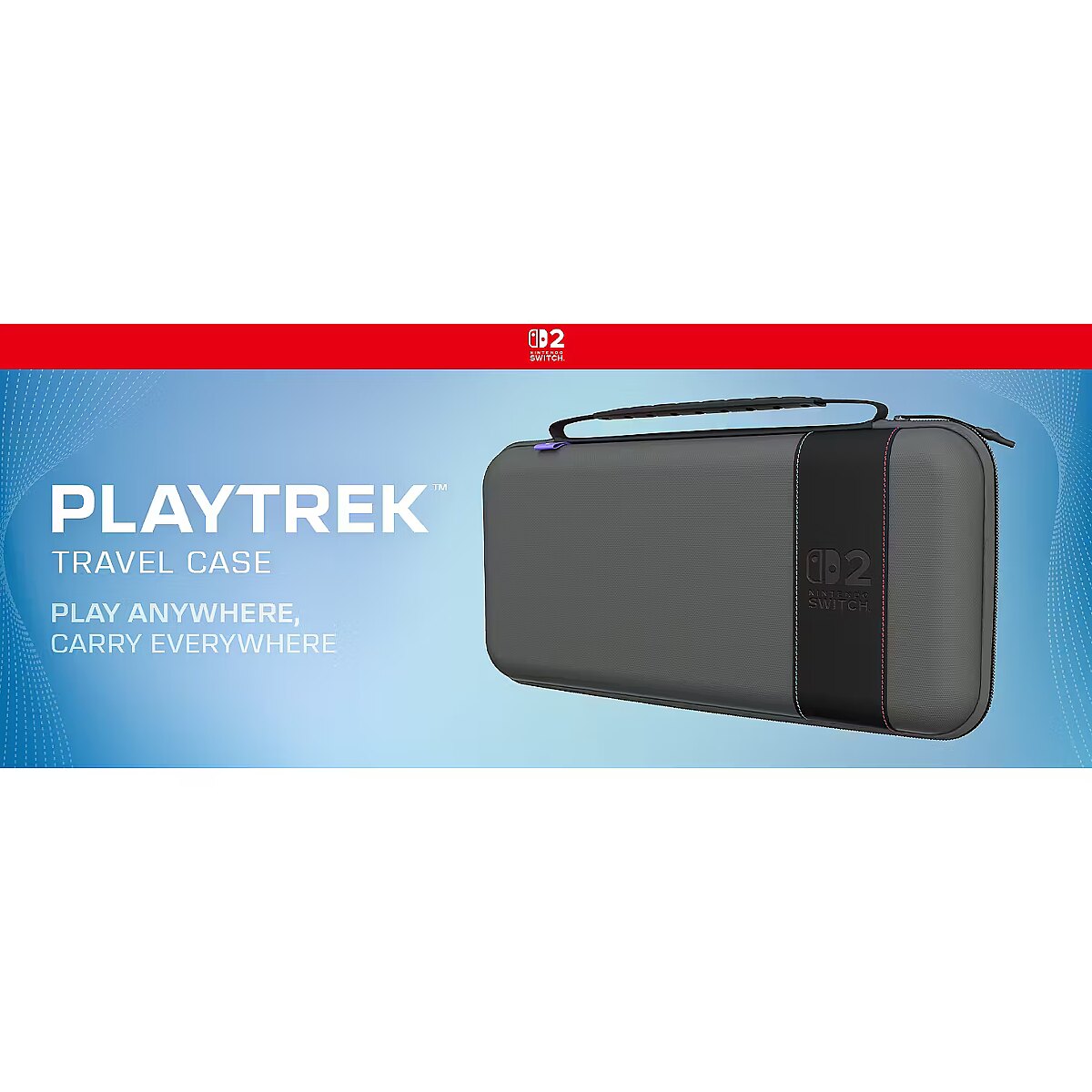 LongDesc - Travel with confidence using the officially licensed PlayTrek™ Travel case for Nintendo Switch™ 2. Also compatible with Nintendo Switch™ & the Nintendo Switch™ - OLED Model, this durable case features a tough EVA molded shell and TPU-coated polyester exterior for added protection. Inside, a padded flap shields your screen and doubles as a game card holder, while a mesh pocket keeps accessories neatly organized. Designed for portability, the case includes a comfortable carrying handle and a sleek design. Whether you’re at home or on the move, the PlayTrek™ Travel Case is your ultimate solution for storing and protecting your console.