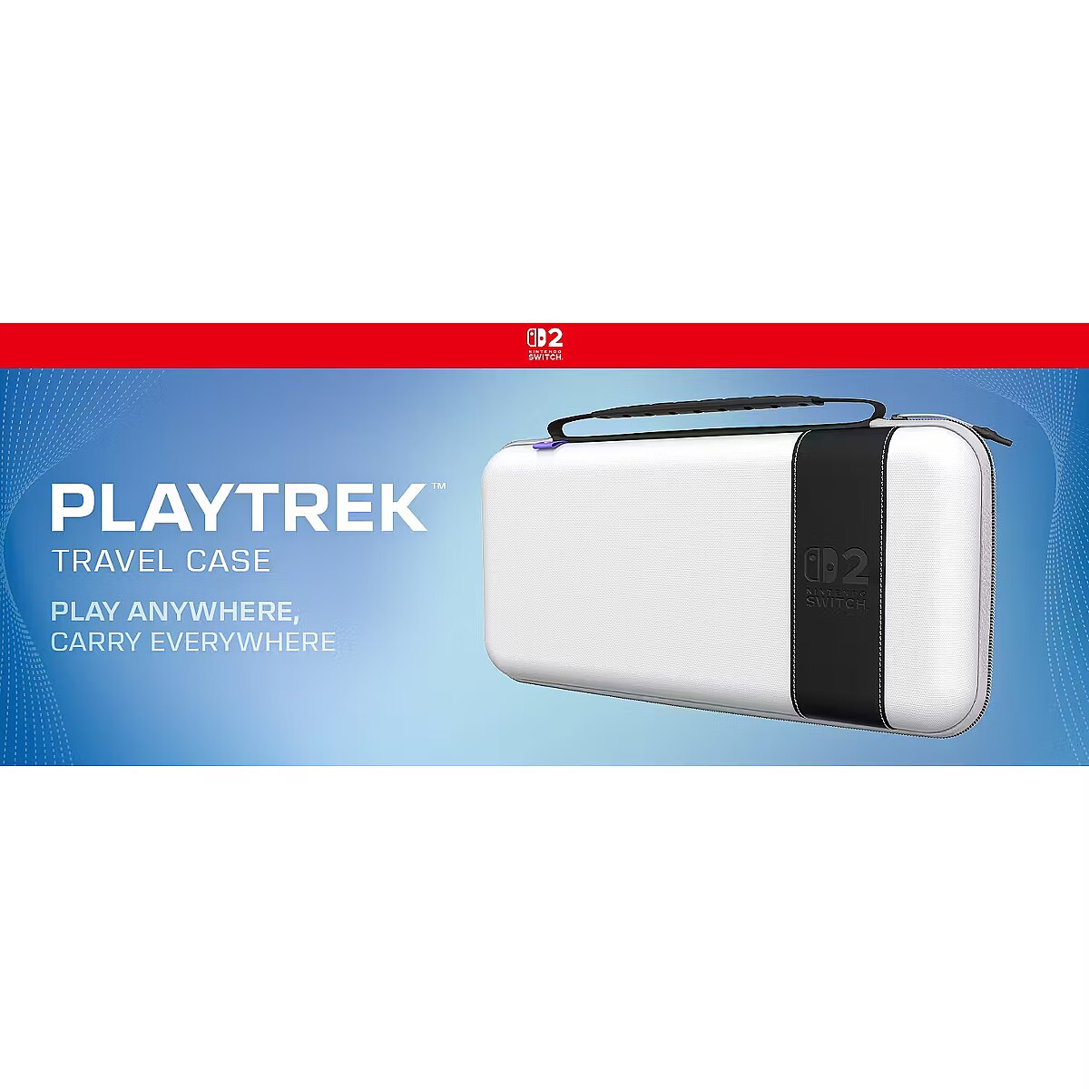 LongDesc - Travel with confidence using the officially licensed PlayTrek™ Travel case for Nintendo Switch™ 2. Also compatible with Nintendo Switch™ & the Nintendo Switch™ - OLED Model, this durable case features a tough EVA molded shell and TPU-coated polyester exterior for added protection. Inside, a padded flap shields your screen and doubles as a game card holder, while a mesh pocket keeps accessories neatly organized. Designed for portability, the case includes a comfortable carrying handle and a sleek design. Whether you’re at home or on the move, the PlayTrek™ Travel Case is your ultimate solution for storing and protecting your console.
