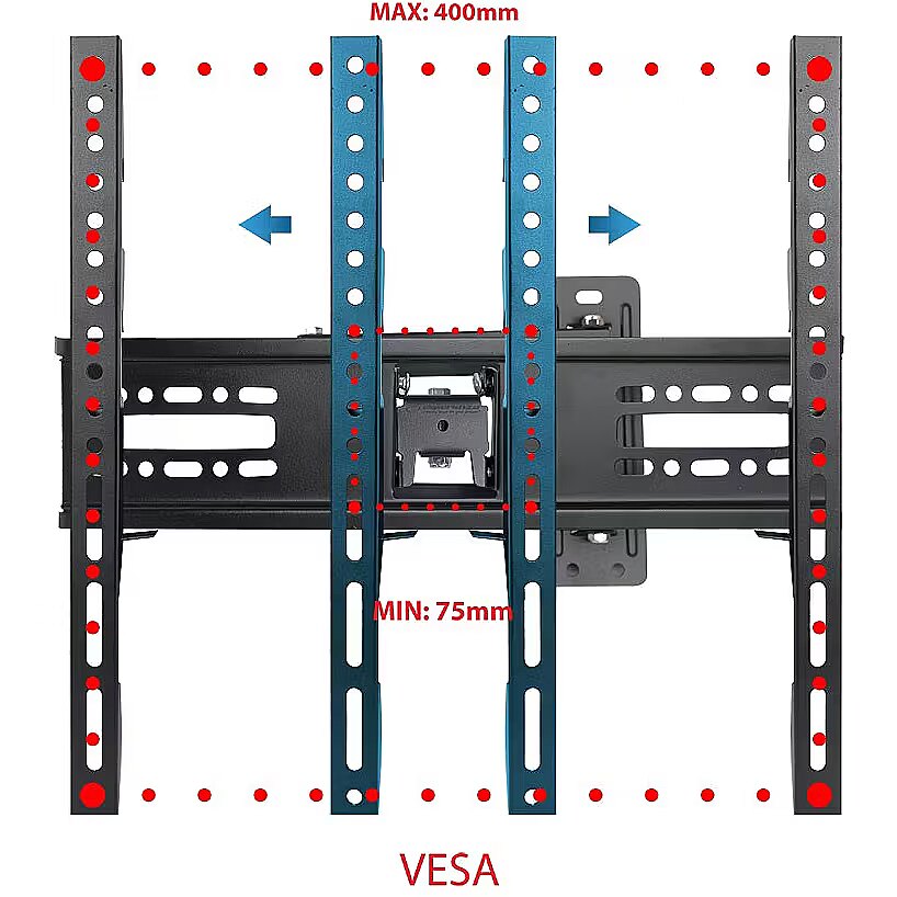 VESA-tuki : 75 x 75, 100 x 100, 200 x 200, 300 x 300, 400 x 400