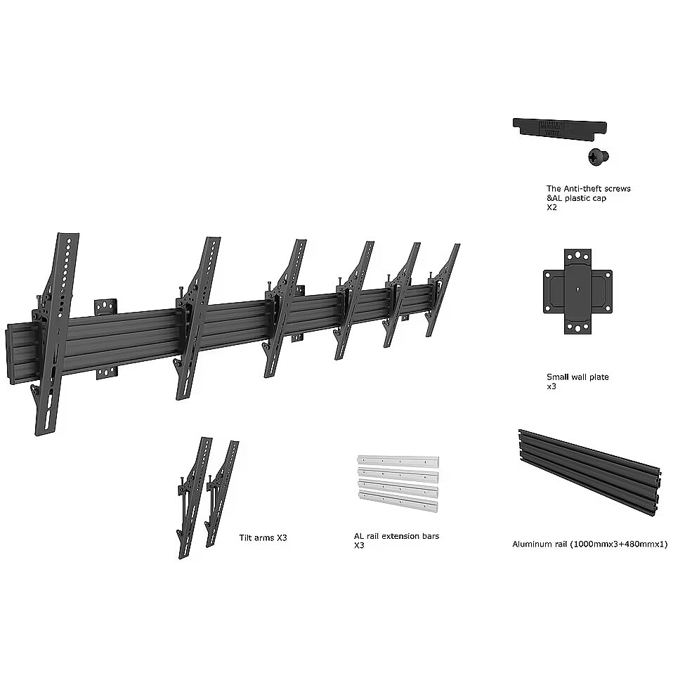 LongProductName - M Wallmount Pro MBW3U Tilt Black - Wall mount for LCD display, steel, 3 screen, single side, tilt, VESA Max 600x400 - screen size: 40"-65" - black