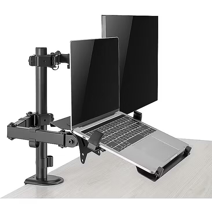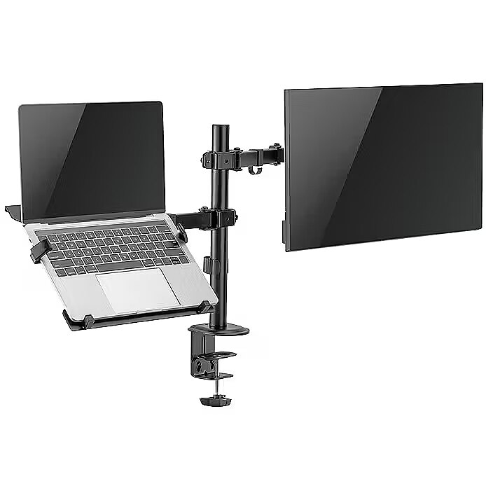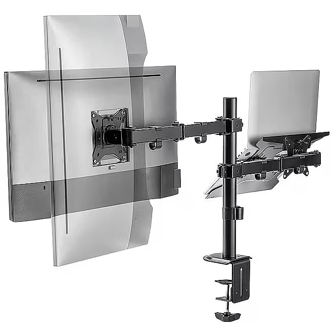 Description - Experience enhanced productivity as you effortlessly multitask between different applications and projects. Whether you're a professional, student, or creative, this dual mount provides the flexibility to customize your workspace according to your specific needs. The adjustable arms and sturdy construction of this mount ensure a secure and stable attachment for both your monitor and tablet/notebook.