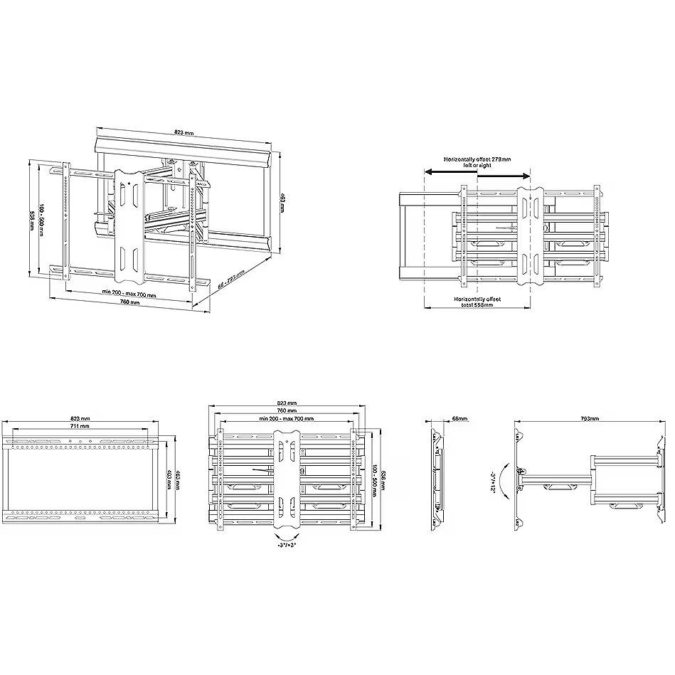 LongDesc - This Full Motion Wall Mount with dual extension arms will mount most flat-panel TV up to 70kg. With its ingenious design it allows even the largest TVs to extend up to 79.5cm from the wall, retract, tilt, and swivel with ease. Using smart tilting technology we allow effortless viewing angle with a tool less manual adjustment. Don´t let the size of your TV dictate where you put it. Capable of supporting TVs up to 100", the Multibrackets M Universal Flexarm Pro Dual HD Offset features two articulating arms that can be horizontally offset to give you the utmost discretion over where your TV is placed. With 79.5cm of extension, this full motion wall mount provides enough tilt and swivel movement to ensure you always have the perfect viewing angle. Its low profile design allows your TV to sit 6.6cm from the wall when fully retracted and features cable management clips to keep your cables out of sight.Horizontal Offset Center your TV on the wall regardless of where your studs are located by adjusting the Multibrackets M Universal Flexarm Pro Dual HD Offset arm assembly 27.9 cm left or right.Heavy Duty 70 kg maxloadThe M Universal Flexarm Pro Single HD Offset allows you to load 70kg displays on a single arm. Horizontal levelling can be used when pulling the display out.