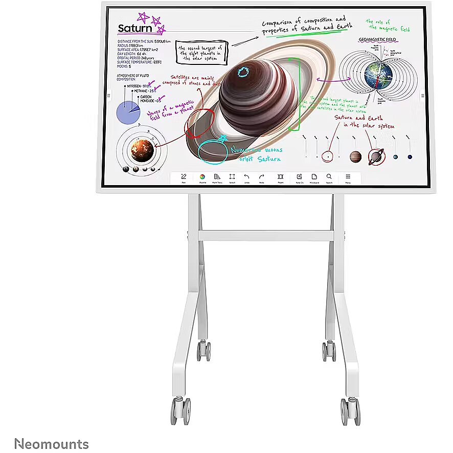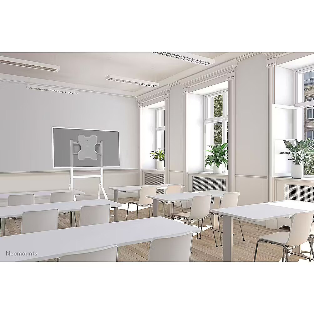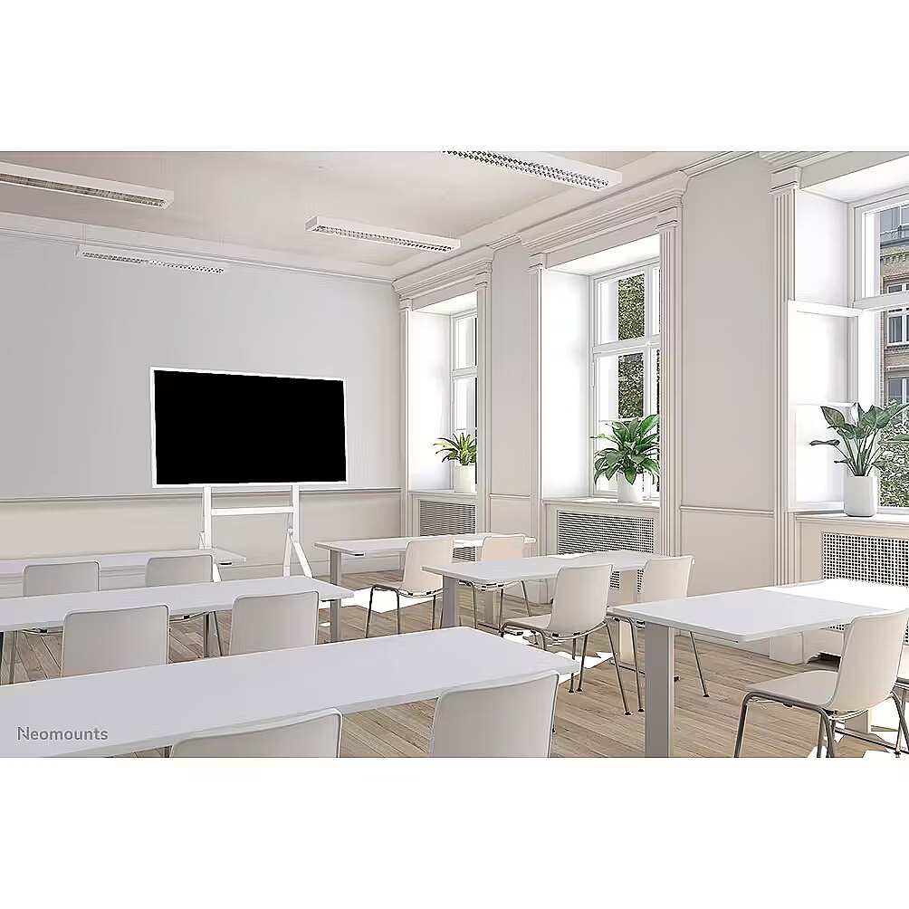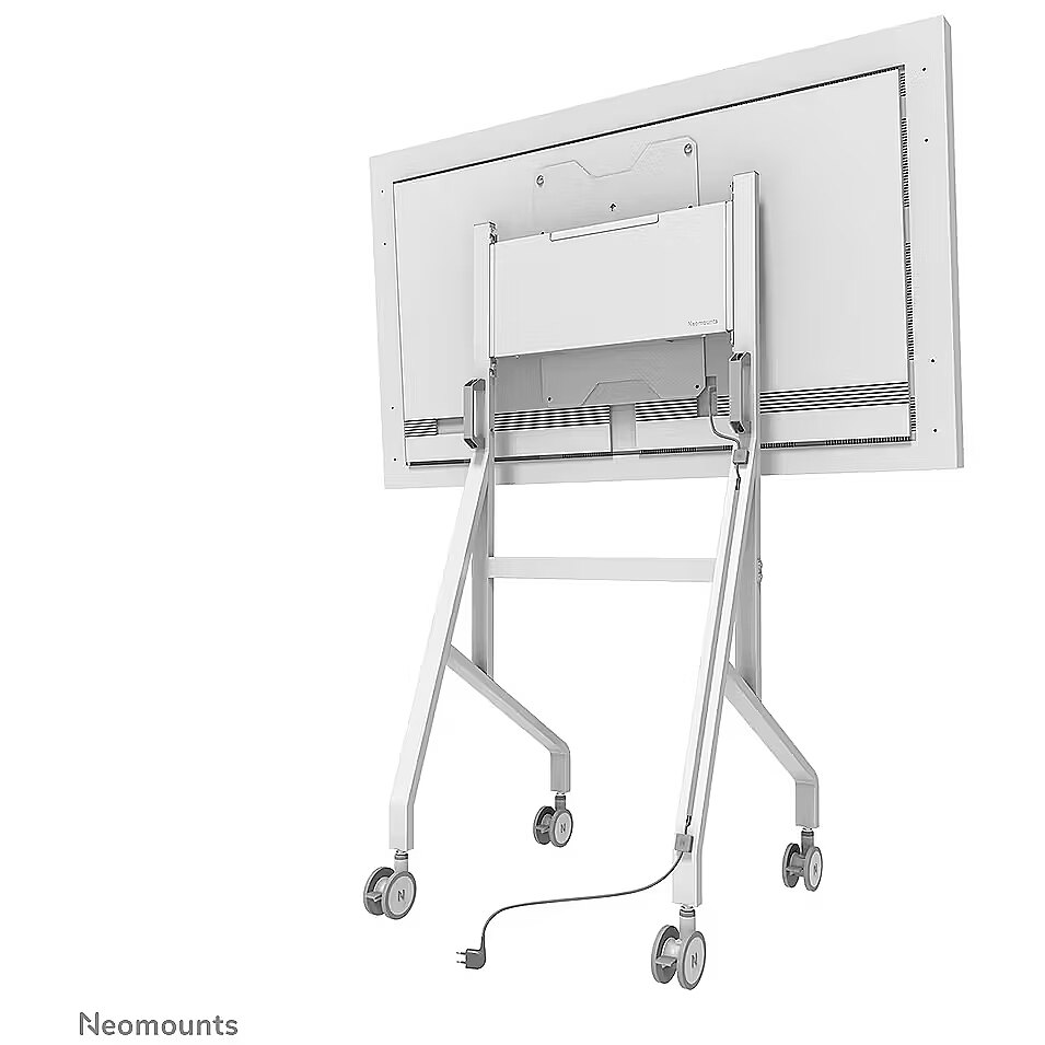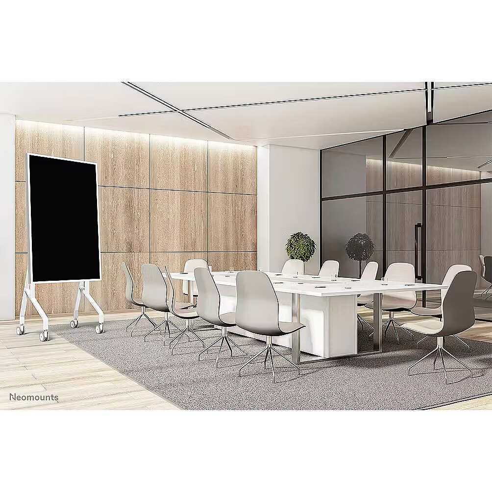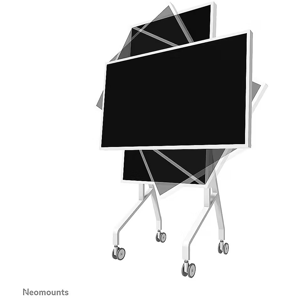 LongDesc - The Neomounts MOVE Go Flip FL50-515WH1 is a premium trolley specifically designed for the Samsung Flip 55" and 65" displays. Its quick rotational interface and premium design, perfectly matching the Samsung Flip, allow users to move, adjust, and present without barriers. It's the ideal solution for flexible collaboration in modern classrooms, meeting rooms, and dynamic workspaces.With the Neomounts MOVE Go Flip's smooth 90° rotation, switching between portrait and landscape orientation is effortless: perfect for dynamic brainstorming, interactive lessons or hybrid meetings. The trolley features two manual preset height positions, enabling users to adjust the screen to their preferred setup.Its sleek and stable design complements the Samsung Flip 55" and Samsung Flip 65". The clean white finish, solid frame and integrated cable management contribute to a tidy and professional appearance that fits seamlessly into any environment.The MOVE Go Flip is easy to move across rooms, thanks to large 100 mm locking castor wheels and ergonomic handles. The trolley's Rapid Install design reduces setup time to approximately 10 minutes, so your Samsung Flip is ready when you are.The Neomounts FL50-515WH1 is built to match your Samsung Flip; in function, form and flexibility.