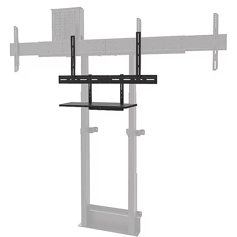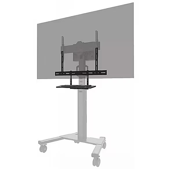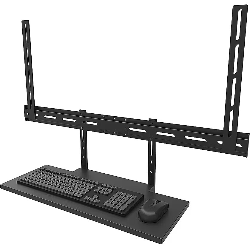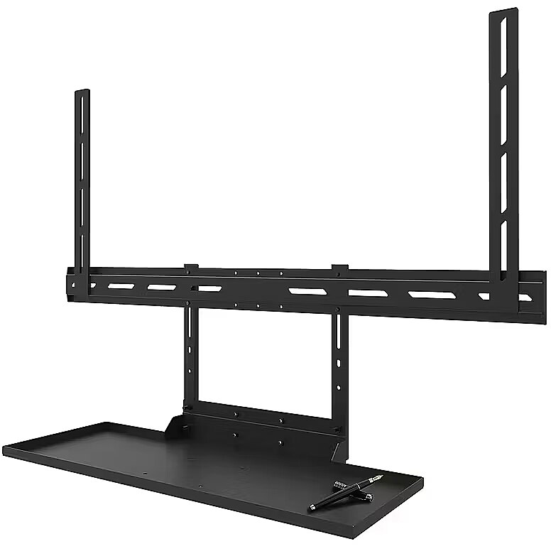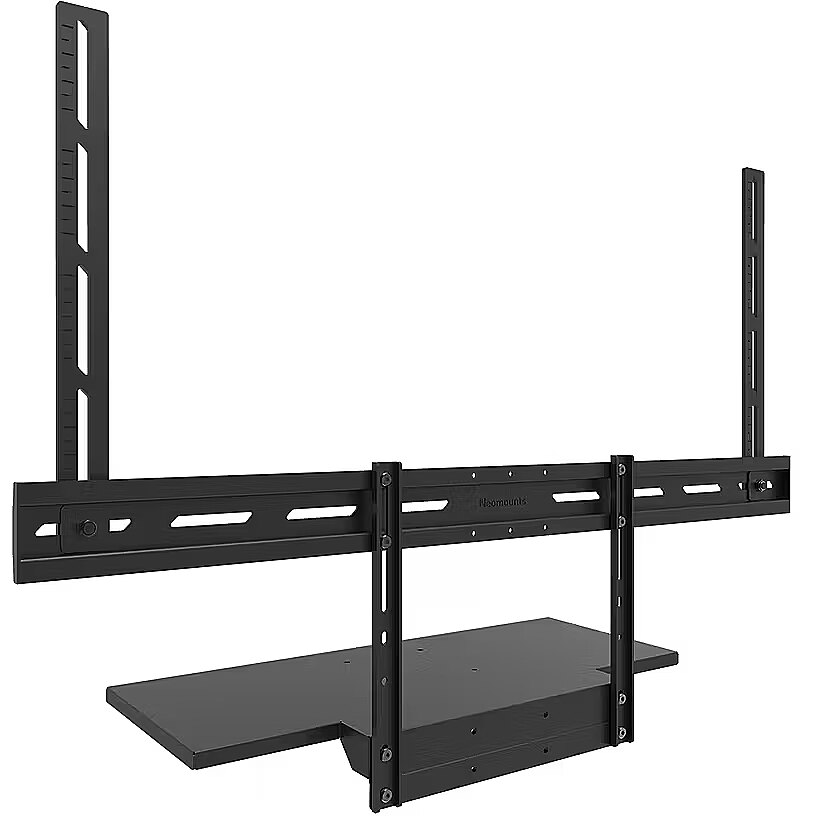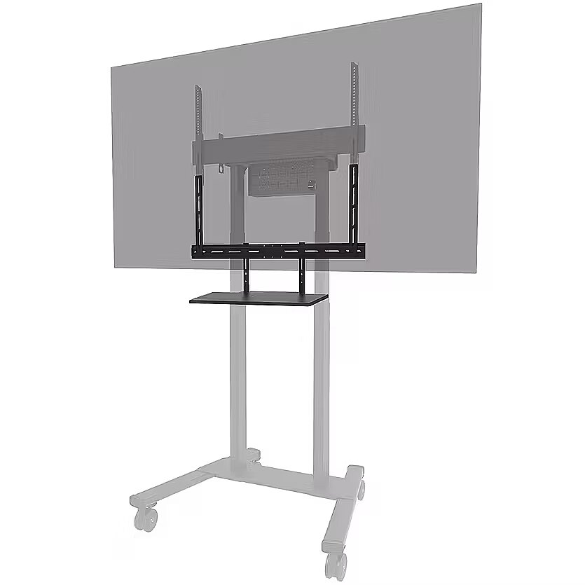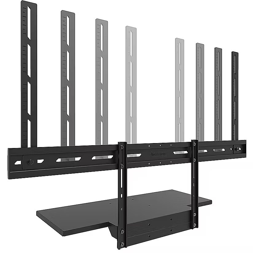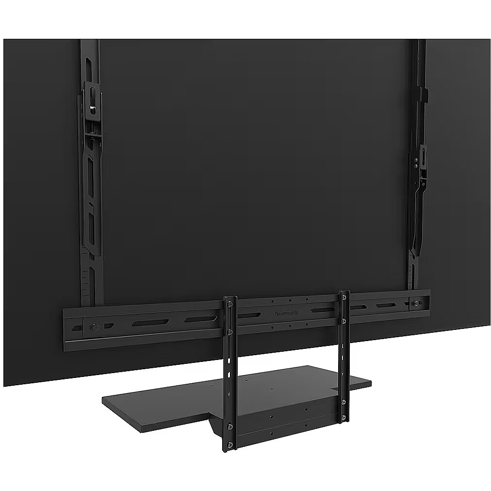 LongDesc - The Neomounts AV40-500BL is a universal keyboard shelf kit designed for installation beneath displays from 43" and larger, supporting VESA hole patterns from 200x200 up to 800x600 mm. Featuring a shelf size of 27x60,3 cm and a maximum load capacity of 2,5 kg, it offers ample space for both keyboard and mouse.For optimal flexibility, both the shelf support and backplate brackets are height adjustable. The AV40-500BL mounting holes allow width and height variations, while the VESA frame adjusts in four positions (200/400/600/800). The kit is compatible with both wall and floor mounts. Installation is quick and straightforward, with ruler-guided alignment ensuring a precise and seamless fit.For detailed compatibility with specific models and mounting sizes, please consult the online manual.
