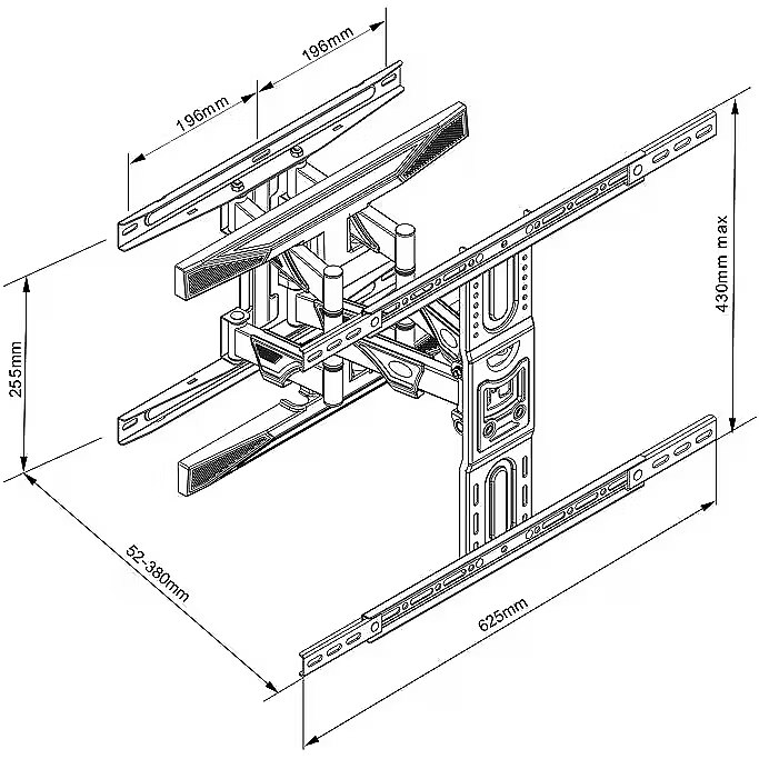 LongDesc - M VESA Flexarm L Full Motion Dual ends an era of bulky and heavy arms needed to flex, tilt and turn. If your aim is to find a discreet partner for that new LED, LCD or plasma in a light weight, super strong solution not visible from any side yet giving you a maximum flexibility then the M VESA Flexarm Full Motion Dual is your choice.The uniquely designed low profile M VESA Flexarm XL Full Motion Dual mount fits most 45" and up to 75" flat panels up to 45.5 kg. It is very well-suited for those applications where seamless integration counts the most. The M VESA Flexarm L Full Motion Dual is part of the Slim Series of fixed, tilt and cantilever mounts offering a slim design without compromising on functionality. Moreover, this wallmount has an extended profile of 500 mm from the wall.The specifications this product reveals are simply incredible.Super Slim defines the minimal 52 mm of the low profile to wall. It extends to a maximum of 380 mm proving that this construction is truly flexible being so lightweight. Yet still, produced with high quality materials creating a super strong solution carrying screen up to 45.5 kgs.Being both slim and flexible the built in functions of the wall mount allows you to optimize the screen for the perfect viewing angle. Wherever you are.M VESA Flexarm Full Motion Dual is suitable for a wide range of screens sized 45" and up to 75". The VESA standards that are supported by this mount is 200 / 300/ 400 and up to 600mm. This means that M VESA Flexarm L Full Motion Dual is suitable for most of the VESA standards including the rare ones.