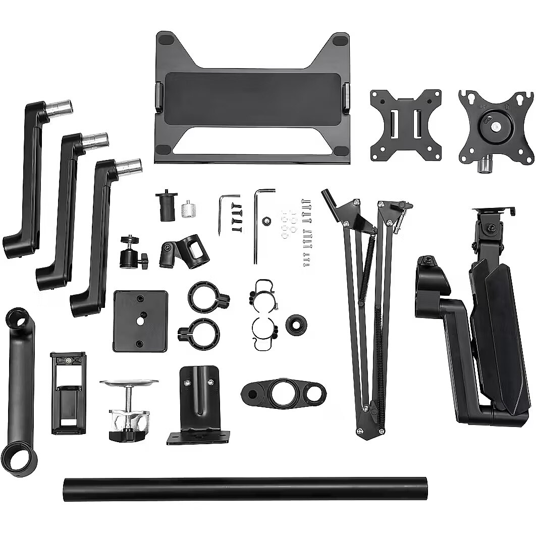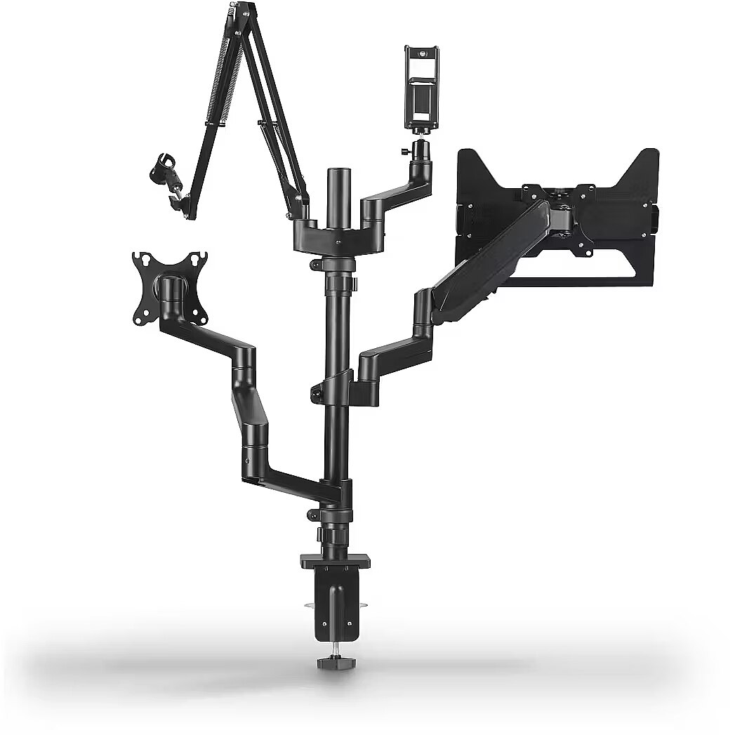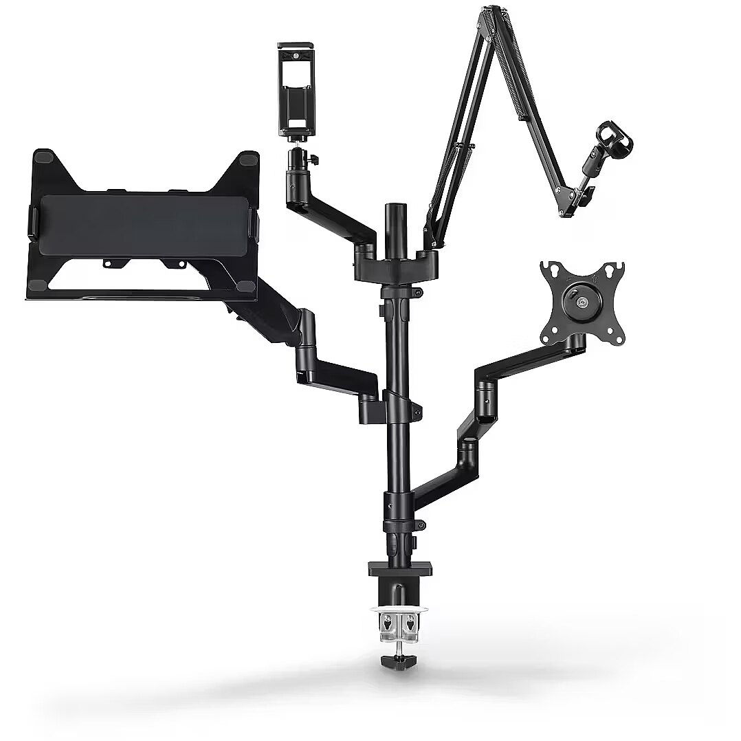 Nelja õlaga disain võimaldab paindlikke seadistusi ühe või kahe monitori, sülearvuti, tahvelarvuti, mikrofoni, kaamera või valgusti jaoks. Lahendust saab hõlpsalt ümber seadistada vastavalt vajadustele.