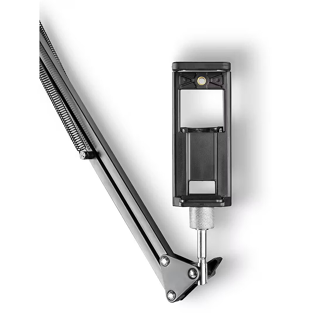 Iga õlg võimaldab sujuvat kõrguse reguleerimist, pööramist, kallutamist ja pikendamist. Tahvli- ja nutitelefonihoidikud toetavad nii püst- kui rõhtasendit, kaameraõlg koos kuulpeaga võimaldab täpset nurga seadistust.