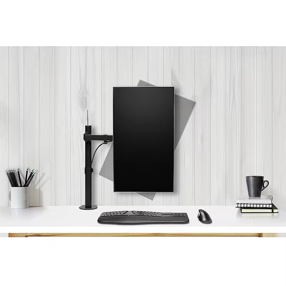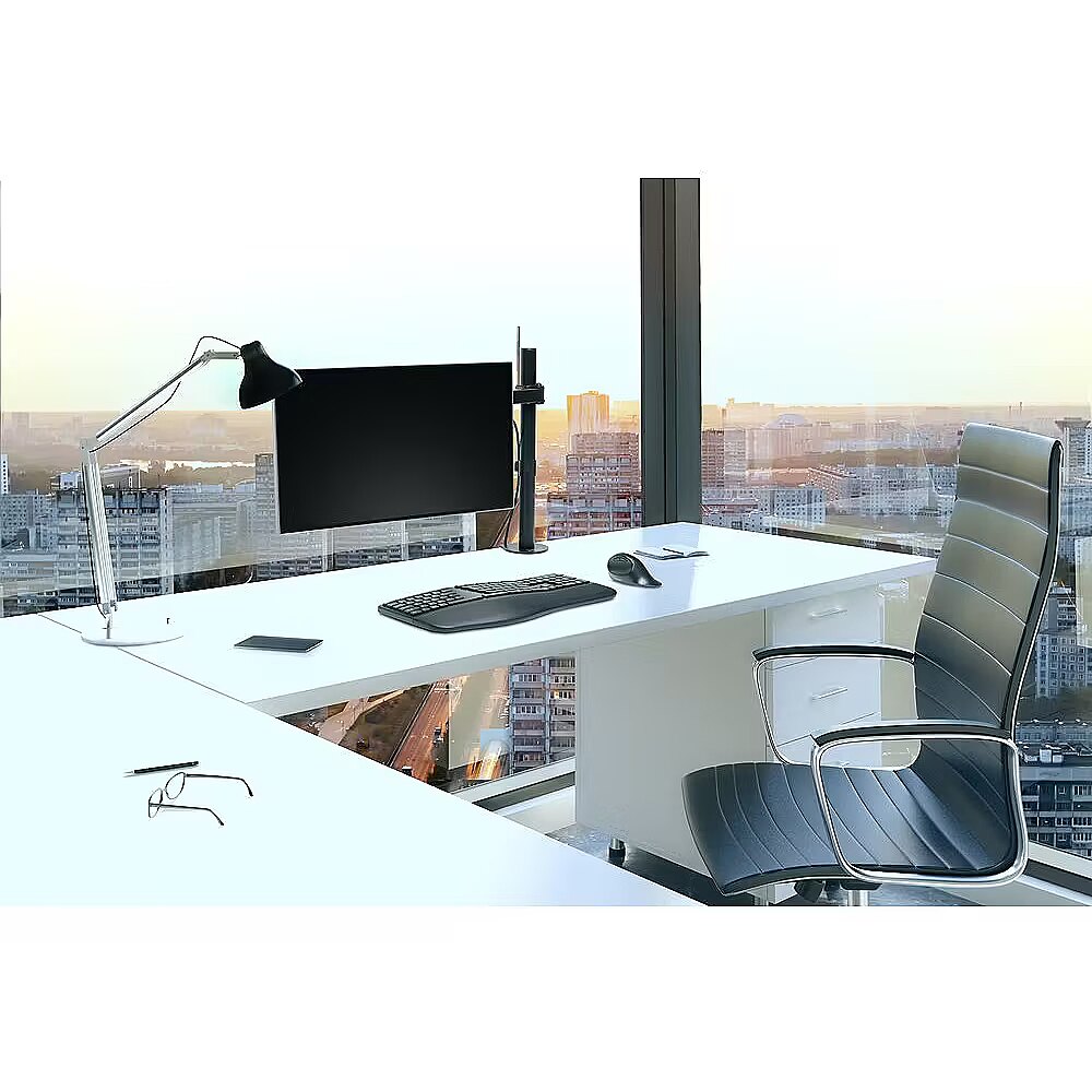 LongDesc - Due to extended monitor viewing, desk-based professionals often struggle with poor posture, eye strain, as well as neck, back and shoulder discomfort. The SmartFit™ Ergo Single Extended Monitor Arm supports more comfortable monitor placement. Its height-adjustable design allows you to easily raise or lower your monitor to the proper viewing height, promoting improved posture and proper eye alignment. Thoughtfully engineered for stability and versatility, it is a simple ergonomic companion for helping you work more comfortably throughout the day. It can be installed in minutes without tools using a sturdy C-clamp, ensuring a damage-free experience.