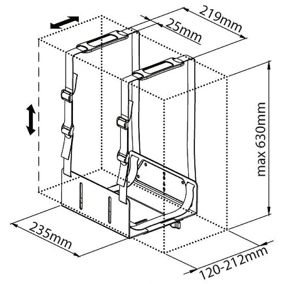 LongDesc - ICA-CS 62 is a universal PC holder suitable for the mounting on the wall and on the side board of the desk. It is adjustable, suits for PC with width from 120 mm to 212 mm.It consist of one support element made of sturdy steel with anti-rust powder coating and two high tensile-strength webbing. Adjustable straps fits up to 178 cm.Features- PC holder for desk side board and wall mount- Mounting: wall or desk side board- Supported suit CPU size:- Lenght: no limit- Width: 12 to 21,2 cm- Height: without straps no limit / with straps max 63 cm- 2x (width + height): without straps no limit / with straps max 150 cm- Supported weight: max 20 kg- Color: blackPackage Contents- PC holder for desk side board and wall mount (1 support element + 2 straps)- Installation hardware- User's manual