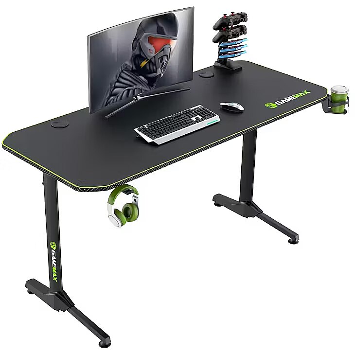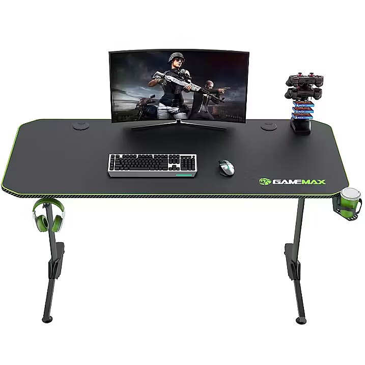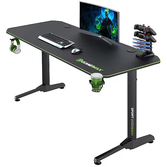 Gamemax D140-CARBON Gaming Desk, Black/Green