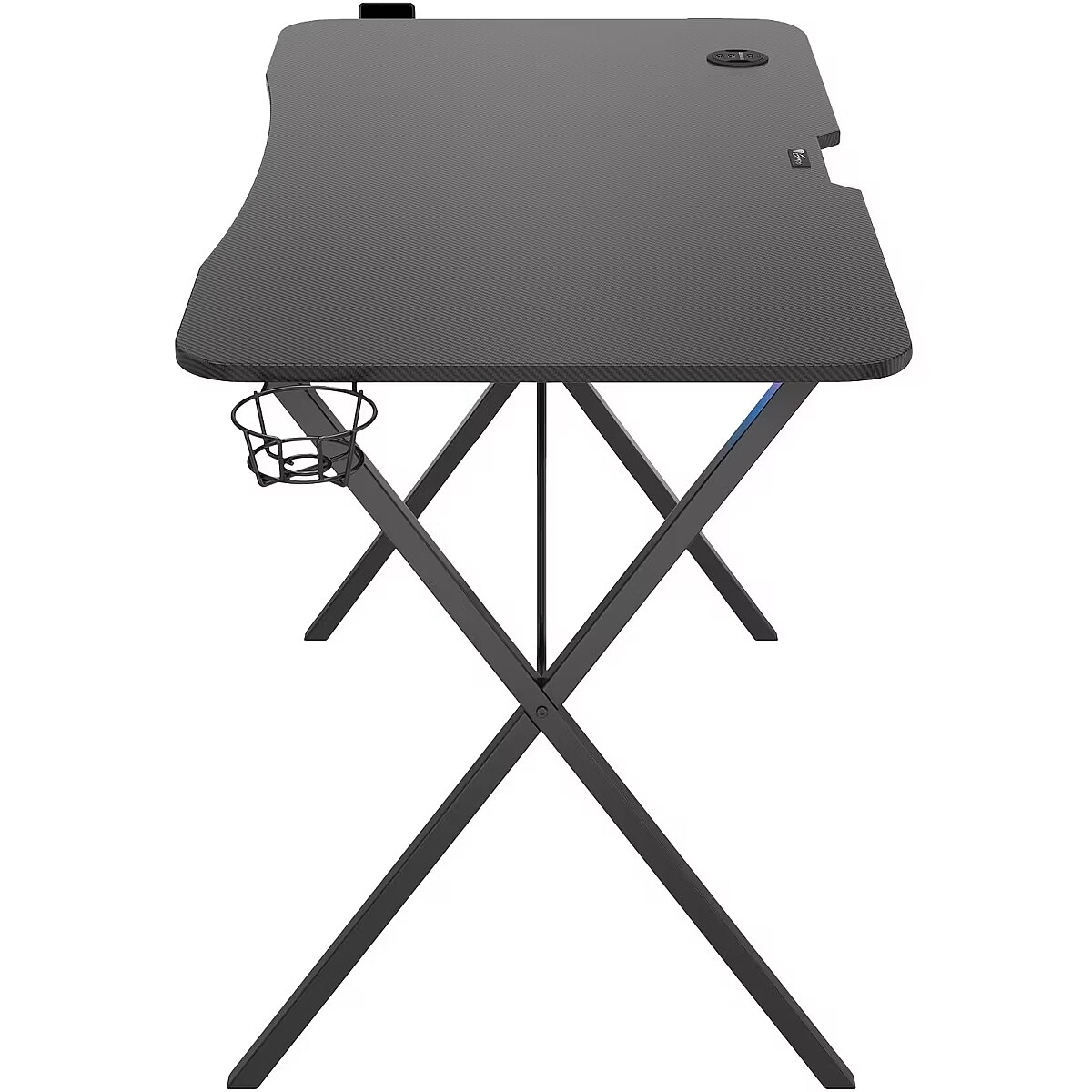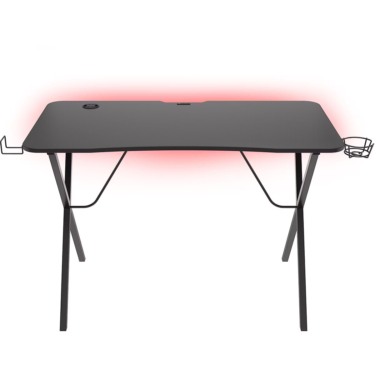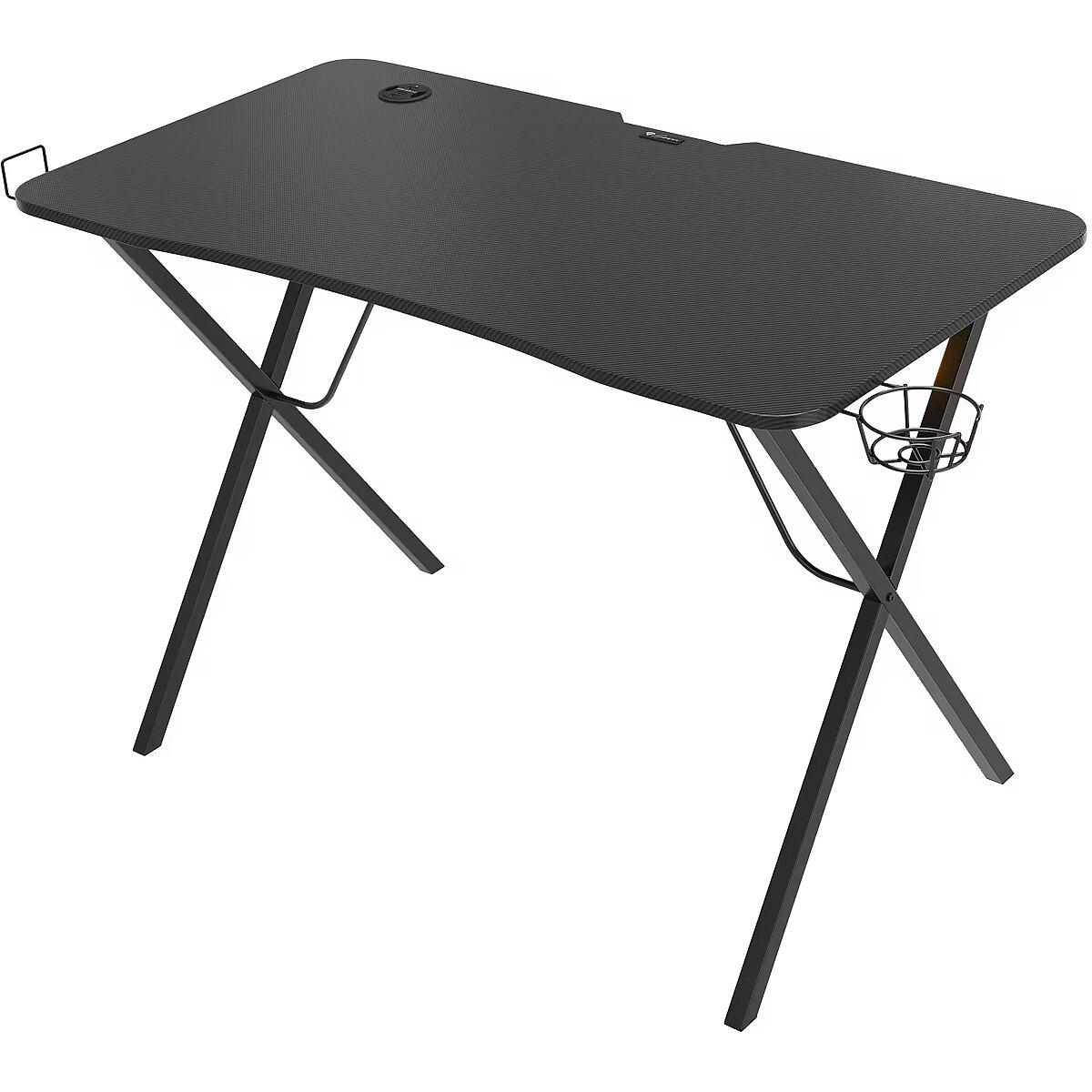 Description - Your gaming passion shines through Your whole gaming world at your hand! Genesis Holm 200 RGB provides enough space for all your gear during your epic battles. With its built-in RGB backlight it creates breathtaking scenery for another level to reach. The best comrade in every struggle Genesis Holm 200 RGB sets up perfect conditions for another fight.  Solid and durable construction guarantees stability. The carbon fiber laminated desk top made of high-quality MDF has ample room for all accessories you need making your extensive campaigns comfortable and enjoyable. All your gear organized Equipped for your geekery, Genesis Holm 200 RGB features holders to keep your desk in good order. Your headset can be safely hung on the special hook at the side of the desk. To survive a whole-night session you can keep your energy drink in the special cup holder protecting your precious devices against any spillage. The holders have universal mounting so you can place them on the right or left side, whichever suits you better. To keep the desk and its surroundings neat and tidy a power strip tray is placed underside so you can manage all cables. USB port at hand Genesis Holm 200 RGB has a built-in hub with three USB 3.0 ports and cable passages making it easier to connect peripherals and manage all wires. Now your keyboard or mouse will not get stuck in the chaos of cables. Unique backlight For the greatest effect enhance your gaming experience with remotely controlled LED backlight with multiply modes and functions. The remote control enables you to change colors, modes, speed and brightness of the backlight creating an awesome and unique atmosphere that will take you away to the virtual reality. The backlight is put under the desk-top so it does not clash with the backlight of other accessories but fabulously lights up the surroundings.