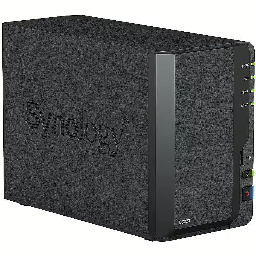 Description - DiskStation DS223 Data management platform for homes and small offices. Gain control over your data Consolidate files from different sources into your own private cloud. The DS223 simplifies the process and offers everything you need to keep your data safe and organized. A secure private cloud Access anywhere, anytime, up to 36 TB of data. A simple backup center Back up your documents and media for easy recovery. Efficient work Power consumption during operation is low at just 17.3 W. A simple private cloud Quickly and easily import data from PCs, Macs, and external storage devices, and sync all devices for streamlined file management. Access from any device Access your files from your PC, Mac, Linux, Chromebook, Android, iOS or any device with a browser. Keep your data private or easily share it with secure links. Saves storage space Enable on-demand mode to download files to your Windows or Mac computer only on access. Pin your most important or most used files for simple offline access. Cloud integration Sync files between private clouds and public cloud services, including Google Drive, Dropbox, and Microsoft OneDrive. Store local copies of your data in the cloud for centralized data management and ownership. Synchronization between locations Say goodbye to long waiting times when downloading or uploading files. Continuously sync content between two Synology devices to enable fast local access anywhere, no matter the amount of data. Your data in safe hands Not all storage is created equal. Synology DiskStation Manager (DSM), the operating system that powers DS223, uses the efficient Btrfs file system to protect data from data corruption and undo any accidental or malicious changes with snapshot technology. All-in-one NAS for the modern home Configure your DS223 to best suit your needs with multiple complete solutions designed for each scenario. Photo management Smart and secure features make it easy to browse, sort and share your media. Minimize digital clutter Organize your photos and clips with Synology Photos' smart sorting features. Easy collaboration Share media with family, friends, and colleagues with privacy-focused sharing options in Synology Photos. Data protection Intuitive backup tools keep your digital memories and important projects safe. Automatic media backup Photos and videos taken on mobile devices are automatically uploaded to your private cloud via Synology Photos or Synology Drive. Protection against cyberattacks Use Synology Drive to protect your data from ransomware attacks or accidental deletion with real-time or scheduled backup of important folders. Video surveillance Intuitive monitoring solutions for your home let you protect what matters. Compatibility with many devices Connect up to 20 IP cameras from a wide range of over 8,300 approved models or ONVIF devices. Universal access Watch the image from the cameras the way you like. Watch camera feeds via web browsers, desktop clients or mobile apps. Receive event notifications and take immediate action. Data platform protection Add an extra layer of protection to your files with one of the built-in license-free backup solutions for DS223. Flexible backups Back up the entire NAS, including system settings and applications, or select specific folders. Secure all your backup data to multiple destinations. Almost continuous protection Increase the level of protection for NAS servers by creating point-in-time copies of shared folders that can be replicated to another location and quickly restored.