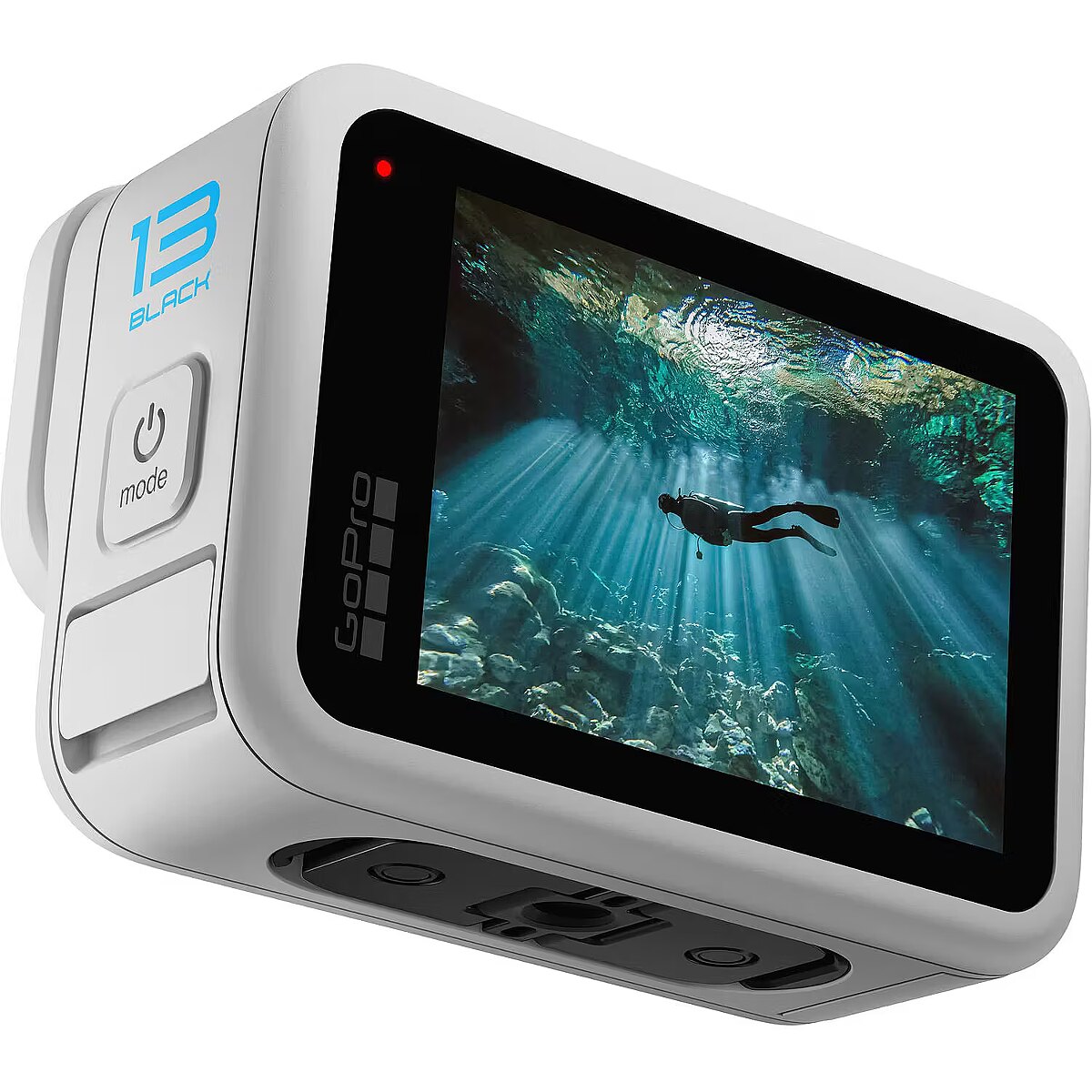 HERO13 Black is compatible with the HB-Series Lenses that let you instantly set up your camera for a variety of speciality shots. The Ultra-Wide Lens Mod is the ultimate POV lens for action-packed scenes and epic landscapes. The Macro Lens Mod captures close-up shots in stunning detail. Neutral Density Filters add motion blur to your footage and let you adjust the lighting in your shots with professional results. Try the Anamorphic Lens Mod for pro-level cinematic shots. HERO13 Black even detects when a lens or filter is attached and automatically adjusts its settings accordingly. Best-in-Class 5.3K Video 5.3K video delivers breathtaking image quality with 91% more resolution than 4K and an incredible 665% more than 1080p. HERO13 Black captures the action with crisp detail and exacting image quality so any shot with any lens will look amazing. 5.3K video also lets you grab stunning photos up to 24.7 MP from your footage using the GoPro Quik app. Burst Slo-Mo HERO13 Black features GoPro slowest slo-mo ever with the ability to record video clips with the action slowed down to 13x normal speed. You’ll also be able to record short 4× slo-mo clips using GoPro highest 5.3K resolution video to catch epic details that you’d never be able to see with the naked eye. Rugged + Waterproof to 10 m HERO13 Black was built to take a beating. It’s ready to capture the fun on any adventure whether you’re tearing through mud, snow or water (down to 10 m). A water-repelling lens cover even helps eliminate lens flare and other artefacts to help keep your photos and videos crystal clear. Award-Winning HyperSmooth 6.0 Stabilisation HyperSmooth 6.0 continues to set the bar for in-camera video stabilisation — giving you impossibly smooth footage no matter how rough it gets. HyperSmooth AutoBoost ensures that you’re getting the widest stabilised footage possible by seamlessly adjusting the shot based on your speed and movement. Built-In 360° Horizon Lock HERO13 Black’s Linear + Horizon Lock digital lens keeps the horizon steady, straight and smooth even if your camera rotates a full 360° during capture. Combined with HyperSmooth video stabilisation, Horizon Lock gives your footage the super-smooth look of professional productions. Extended Runtimes in All Conditions Spend more time recording and less time charging. A higher-capacity 1900-mAh Enduro battery gives you longer runtimes in all conditions, from hot to freezing and everything in between. You’ll get 1.5 hours of continuous recording at 4K30 or 5.3K30, plus over 2.5 hours of continuous recording at 1080p30. More Power Options HERO13 Black has more power options than any GoPro before it. The Contacto Waterproof Magnetic Power Cable and Door Kit features a magnetic link that gives you a quick and simple way to connect to an external power source. The Dual Battery Charger + Integrated Powerbank features its own internal battery that can conveniently charge the two included Enduro batteries anywhere. It can also be plugged directly into your camera for extralong recording sessions. More Mounting Flexibility HERO13 Black features three mounting options that make it more versatile than ever. The new Magnetic Latch Mount makes it faster and easier to swap your camera from one mounting setup to another. Use the built-in mounting fingers to securely attach your camera to GoPro mounts when you need durable mounting in rough conditions. The 1/4-20 mounting threads can be used with tripods and other standard camera accessories. Easy Hands-Free Capture HERO13 Black is packed with features that make it easy to get incredible footage when your hands are busy with handlebars, ski poles, tow ropes and more. It’s compact and light enough to wear comfortably using one of the many available GoPro body mounts. Once mounted, you can use voice commands for the ultimate in hands-free control. Mounts for Every Activity Bike mounts, surfboard mounts, car mounts, pole mounts, grips, extension poles and more. GoPro has mounts that’ll help you get any shot you can dream up. Capture your adventures from dramatic new angles and see them as you’ve never seen them before or record point-of-view footage and relive amazing moments exactly as you saw them. HLG-HDR Video HERO13 Black takes its best-in-class image quality to the next level with the option to record in Hybrid Log Gamma (HLG), a standard HDR format that the pros use to capture 5.3K and 4K video in the 10-bit and Rec. 2100 colour space. This advanced feature requires a compatible display and media player for playback. Users can still capture video using HDR without HLG for viewing on standard displays and media players. Widescreen, Vertical + Full-Screen Capture HERO13 Black’s powerful 1/1.9” image sensor lets you do more. Choose widescreen capture (16:9 aspect ratio) for full-screen playback on a TV or vertical videos (9:16 aspect ratio) for social media posting. For maximum versatility, the full-frame option (8:7 aspect ratio) captures a 156° field of view that lets you crop in to create widescreen and vertical shots later. 10-Bit Colour + Log Encoding HERO13 Black lets you choose between capturing standard video at 10-bit or Log encoding at 10-bit with GP-Log. Capable of displaying over 1 billion colours, 10-bit colour delivers enhanced colour depth, smoother gradations and more realism in your videos. Advanced users can use GP-Log to get more detail in their footage while making necessary image corrections in postproduction (a lookup table/LUT is provided). Timecode Sync Advanced users with more than one HERO13 Black can sync them with the exact same timecode to make multi-camera editing a lot easier. It works with Final Cut Pro, Adobe Premiere and other editing software to further streamline post-production. 27-MP Photos + 24.7-MP Frame Grabs HERO13 Black takes 27-MP Single, Interval, Burst and Night photos that let you capture standard, fast action and low-light shots. You can also grab stunnin