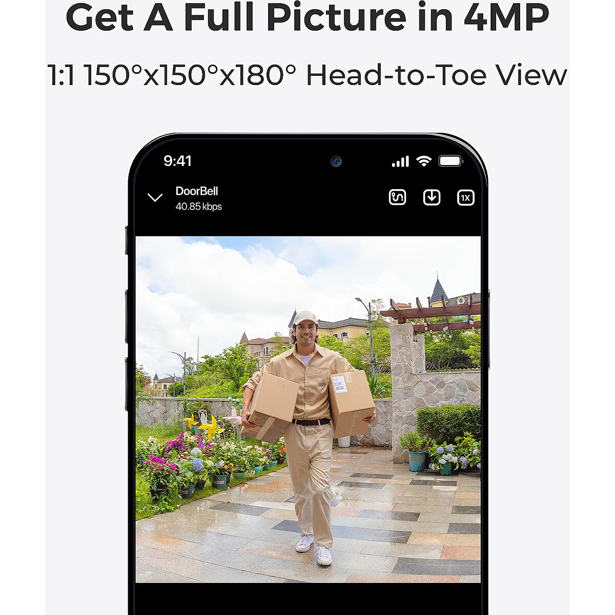 LongProductName - D340B with Chime and 64GB SD card included, 4MP 2.4/5GHz Wi-Fi Doorbell with Expansive Head-to-Toe View, Person/Vehicle/Package Detection