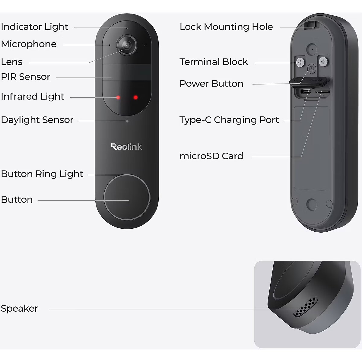 LongDesc - Reolink D340B with Chime and 64GB SD Card offers a high-resolution 4MP camera with a sweeping 150°x150°x180° head-to-toe view for comprehensive visibility. With smart detection for people, vehicles, and packages, you’ll always stay informed of what’s happening around your home. Engage instantly with visitors using the two-way audio feature, while the paired Chime ensures you receive alerts throughout your home, so you never miss an important notification. The included 64GB SD card provides ample local storage, allowing you to securely save and review footage whenever needed.1:1 Aspect Ratio + 4MP HDExperience 2K HD with a unique 1:1 aspect ratio, delivering a 150°x150°x180° head-to-toe view for exceptional front door visibility.Smart Detection + Instant AlertsWhen people, vehicles, or packages are detected, you will be notified by the real-time notification. Fear no more porch pirates, your packages are always under monitoring.Rechargeable Battery + HardwireFlexible power options. Use the rechargeable battery or hardwire to existing wiring. The hardwire option supports mechanical chimes. (Power source: 8~24V, 5VA-40VA).Dual-Band Wi-Fi NetworkSupports both 5GHz and 2.4GHz Wi-Fi., meeting your diverse connectivity needs. 2.4GHz band offers extensive coverage, while 5GHz frequency delivers rapid network speeds.Visitor NotificationReceive instant push notifications and even a video call when a visitor presses the doorbell. See their faces on the screen without having to open the door.Multiple Chime OptionsWhether you opt for Reolink Chime, a traditional mechanical chime, Google Assistant, or Reolink Home Hub, rest assured that our doorbell will complement your home environment.Two-Way Audio + Quick ReplyEngage in real-time communication with visitors via two-way audio. Pre-recorded quick replies add convenience, letting them speak for you whenever needed.Reliable Guardian in Any WeatherDesigned to withstand the elements, this weatherproof doorbell provide reliable outdoor protection against dust and water.HDR TechHDR technology dynamically adjusts the exposure to enhance image quality, ensuring clear and detailed visuals even in challenging lighting conditions.Chime and 64GB SD card includedThe Chime provides instant audible alerts throughout your home, ensuring you never miss a visitor or motion notification. The 64GB SD Card offers generous local storage, allowing you to store video footage directly on the device without needing a cloud subscription.