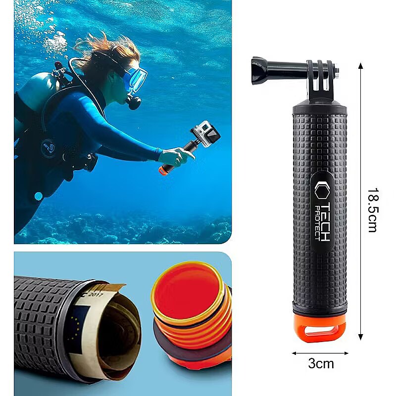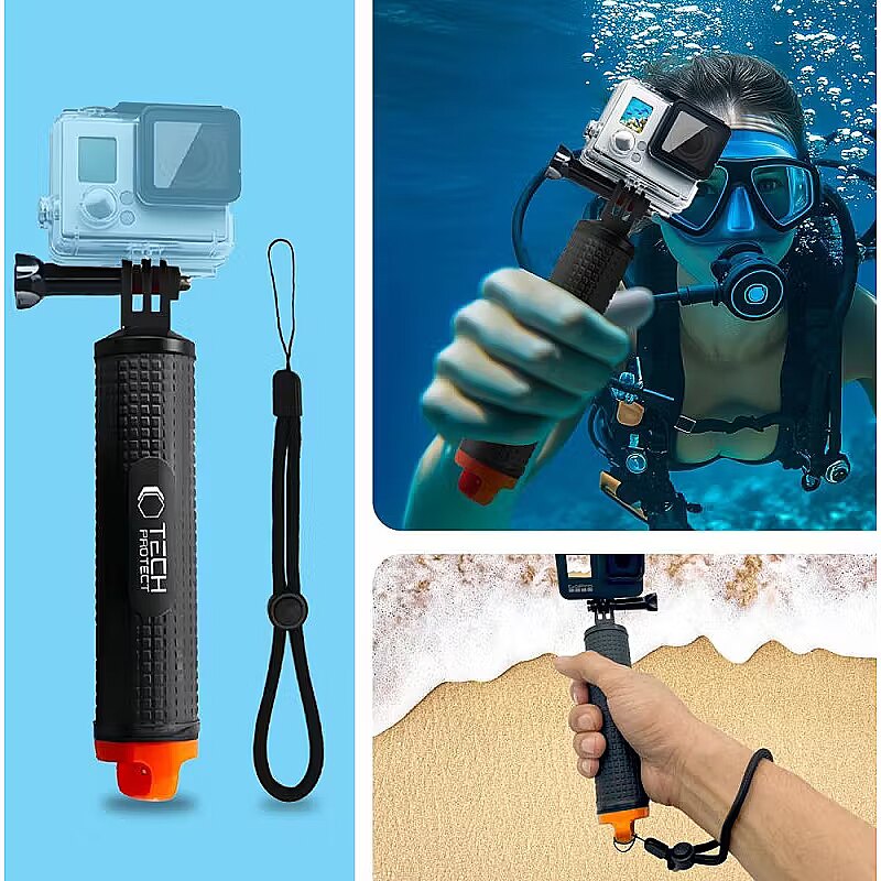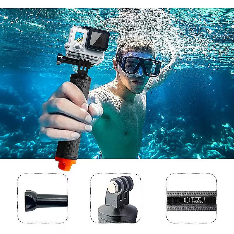 description_en - The Tech-Protect GA100 Hand Grip is a reliable buoyancy grip that provides stability and security when recording both on land and underwater. Thanks to the floating design, your equipment will always stay afloat and the bright orange tip makes it easy to quickly locate the grip in the water. The ergonomic and non-slip surface guarantees a secure grip even in difficult conditions, preventing the device from slipping out of your hand. The grip is equipped with a waterproof storage compartment for small items such as money or keys, making it the perfect accessory for the beach, hiking or diving. The Tech-Protect GA100 Hand Grip is compatible with a wide range of sports cameras, making it a versatile tool for any extreme sports enthusiast. An additional wrist lanyard provides even more security, allowing you to securely attach the grip to your hand. With the Tech-Protect GA100 Hand Grip, you can record your adventures without worry and enjoy complete freedom to record, whatever the conditions. Waterproof storage compartment Non-slip finish Lightweight aluminium construction Dimensions: 18.5 × 3cm
