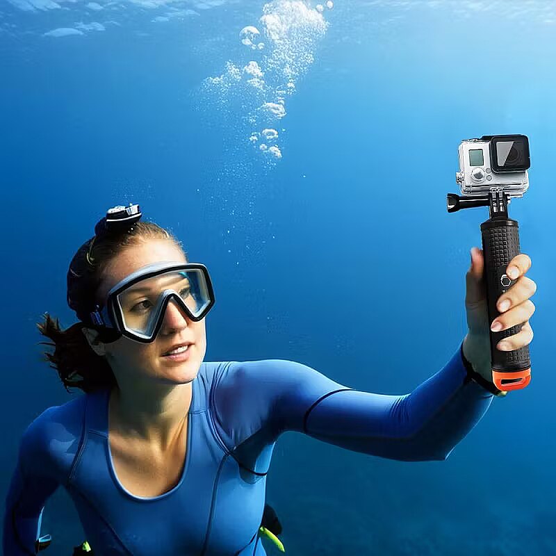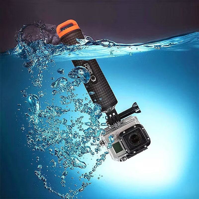 description_short_en - Ergonomic handle for adventure cameras Keeps the camera afloat when dropped in the water Perfect for worry-free shooting in water Anti-slip surface and wrist strap Waterproof storage compartment for small items