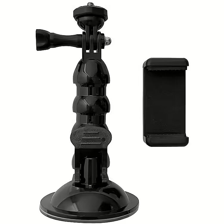 Практичное крепление на присоске для приключенческих камерУдобно крепится к гладкой поверхностиАдаптер для телефона в комплекте
