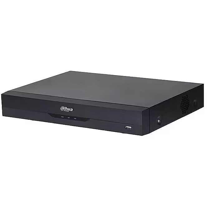 Description - - Pentabrid capability: Each channel supports up to 8MP: HDCVI, AHD, TVI, CVBS and IP Video input, Auto-detect - 16-channel BNC interface - Recording: HDCVI/AHD/HD-TVI recording: 4K, 6MP, 5MP, 4K-N, 4MP, 3MP, 4M-N, 1080P, 720P, 960H, D1, CIF - All channel 4K(1fps–7fps); 6MP(1fps–10fps); 5MP(1fps–12fps); 4K-N, 4MP/3MP(1fps–15fps); 4M-N/1080P/720P/960H/D1/CIF (1fps–25/30fps); - IP: 16+16 channels, each channel up to 8MP, Max 128 Mbps incoming bandwidth - AI Coding/H.265+/H.265/H.264+/H.264 video compression - G.711A, G.711U, PCM audio compression, - 2x SATA interface up to 20 TB storage - VGA/HDMI up to 4K output - 1 RJ-45, 2x USB ports, RS485 - No front panel control, 4/1 Audio I/O, 16/3 Alarm I/O - 1U case, mouse included - ONVIF 16.12, CGI Conformant, Smart Search, Coax audio support - Third-party IP camera support: Dahua, Arecont Vision, AXIS, Bosch, Brickcom, Canon, CP Plus, Dynacolor, Honeywell, Panasonic, Pelco, Samsung, Sanyo, Sony, Videotec, Vivotek, and more - AI: 16 channels Smart motion detection + Search by target classification (Human, Vehicle) - 1 channel Perimeter Protection - Human/Vehicle secondary recognition for tripwire and intrusion, 10 IVS for each channel, Search by target classification (Human, Vehicle) - 1 channel Face Recognition (only support analog camera), Max 12 face pictures/sec processing, - Free IP monitoring software available