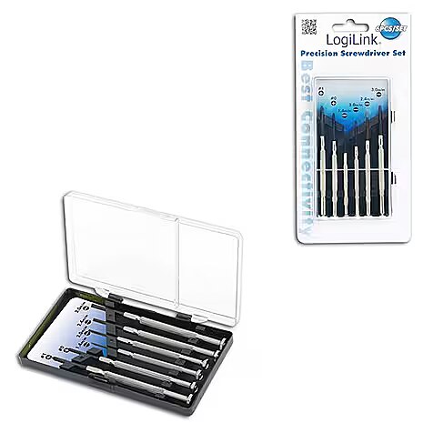 Name - Logilink | Small Screwdriver Set, 6pcs | Incl. transport boxThe set includes1x slot driver 1.4 mm1x slot driver 2.0 mm1x slot driver 2.4 mm1x slot driver 3.0 mm1x Cross slot driver 0 mm1x Cross slot driver 1 mm