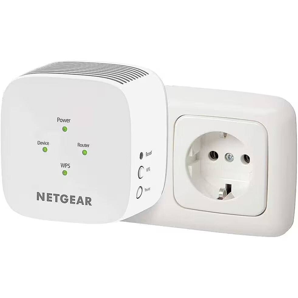 LongSummaryDescription - NETGEAR EX3110. Type: Network transmitter & receiver, Data transfer rate: 750 Mbit/s, Ethernet LAN data rates: 10,100,300 Mbit/s. Cabling technology: 10/100Base-T(X), Networking standards: IEEE 802.11a, IEEE 802.11ac, IEEE 802.11b, IEEE 802.11g, IEEE 802.11n, Wi-Fi standards: Wi-Fi 5 (802.11ac), 802.11b, 802.11g, Wi-Fi 4 (802.11n). Product colour: White, Housing material: Plastic, LED indicators: Power, Status, WLAN, WPS. AC input voltage: 100 - 240 V, AC input frequency: 50 - 60 Hz. Width: 72.5 mm, Depth: 72.5 mm, Height: 64.8 mm