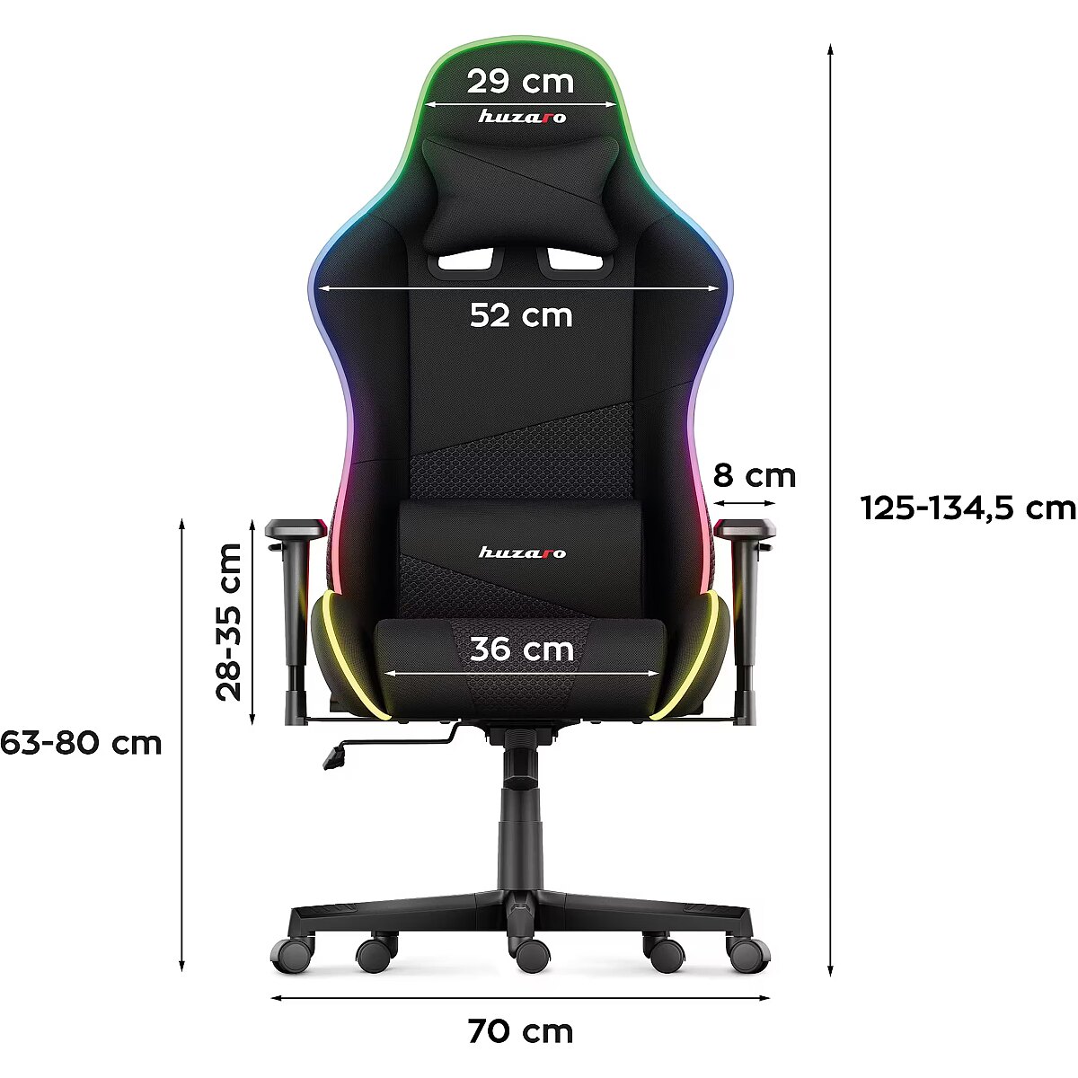 Dane techniczne: Inne cechy - podświetlenie RGB | pilot | poduszka karku | poduszka lędźwiowa