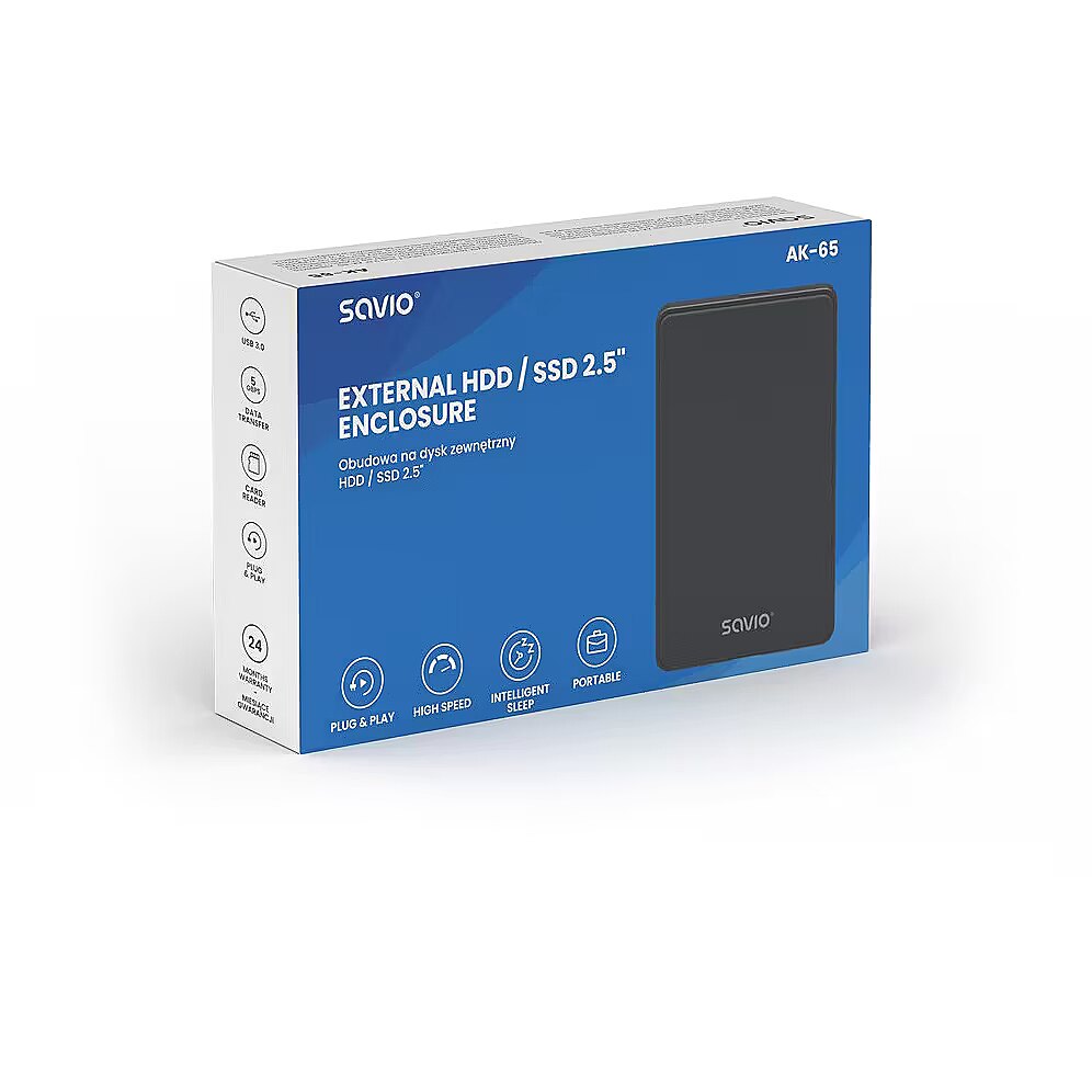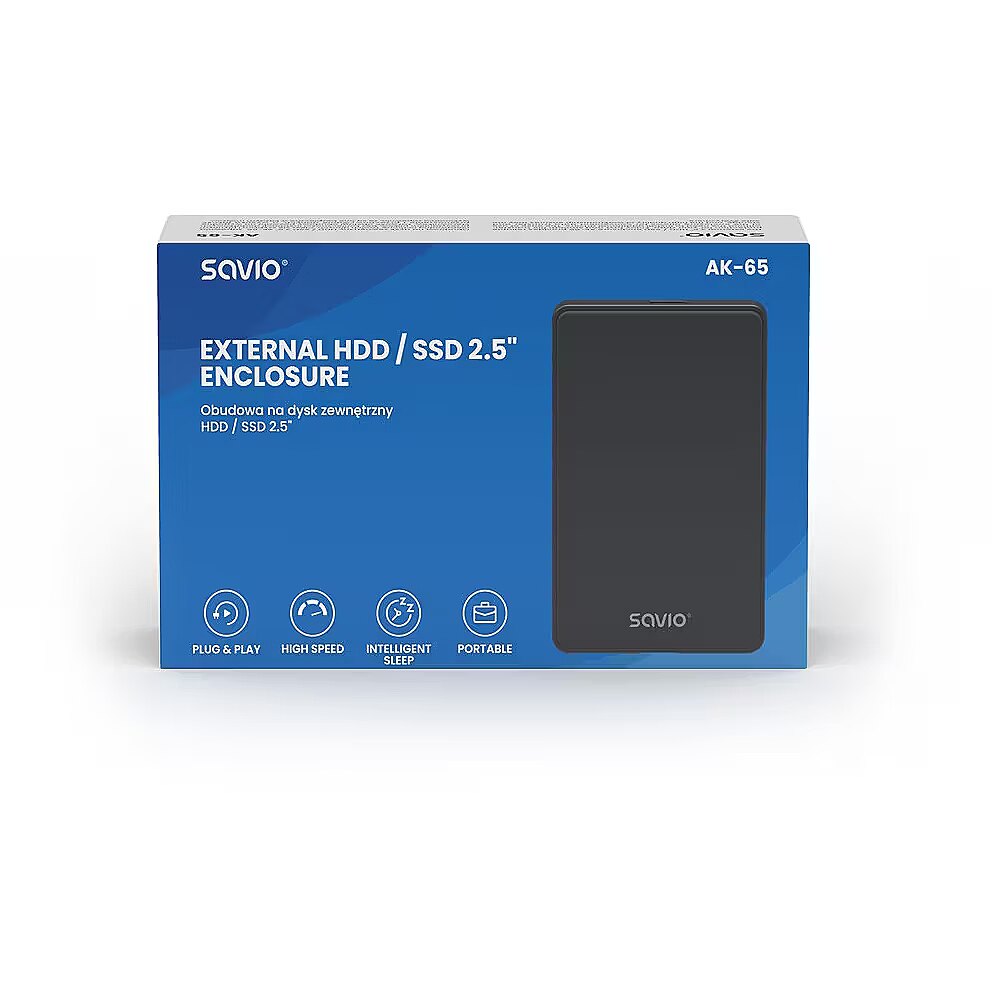 description_en - The Savio AK-65 2.5″ external HDD/SSD enclosure, is the ideal solution for people who want to store and move their data in a convenient and secure way.