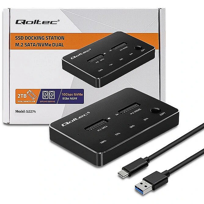 Qoltec 52274 M.2 SSD drive docking station NVMe SATA USBC DUAL 2 x 2TB