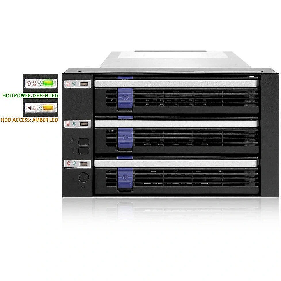 - Fits three 3.5” SATA I / II / III (SATA 6Gbps) hard drives in two 5.25” device bay & fully supports SATA Hot-Swap function.