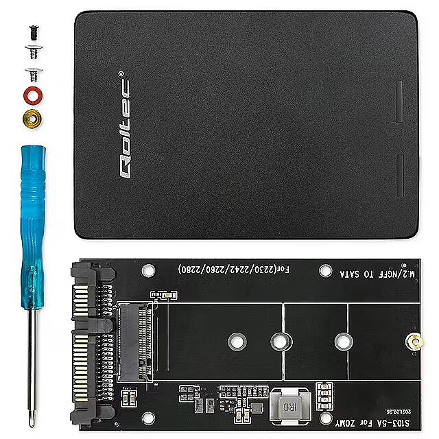 Qoltec Adapter for M.2 SSD | SATA NGFF do SATA III | 2TB | Super speed 6Gb/s | Black