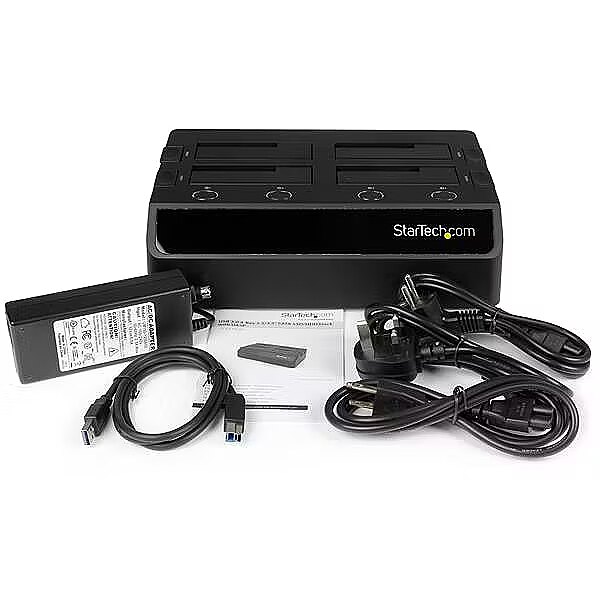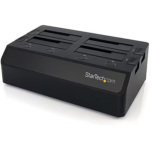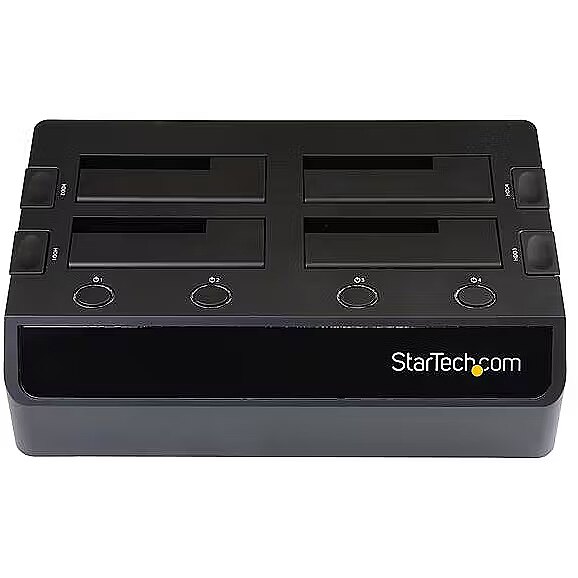 LongDesc - External SSD/HDD Docking Station | USB 3.2 Gen 1 (5 Gbps) to SATA I/II/IIIOur SDOCK4U33 Quad-Bay USB 3.0 to SATA Hard Drive Docking Station enables access to up to four 2.5/3.5" SATA drives from your desktop or laptop computer over USB 3.2 Gen 1 (5 Gbps) .Each drive loads directly into a tray-less top slot, no additional enclosures or tools are required. This dock enables quick access to drives file transfers, troubleshooting purposes, or system configuration/deployment - ideal for technicians and IT professionals.This hard drive dock features independently powered SATA controllers. These controllers enable the hot-swapping of idle drives, without impacting the function of active drives, saving you time and resources. Two adjustable 40mm cooling fans keep your drives operating at optimal temperatures for performance and reliability.Extend the compatibility of this HDD/SDD docking station with the addition of our SATA to IDE Hard Drive Adapter (SAT2IDEADP), for easy docking of legacy 2.5 or 3.5in. IDE hard drives.Compatible with Any Capacity or File FormatCompatible with 2.5" and/or 3.5" SATA HDDs and SSDs of any capacity and file format recognized by your host system. This dock works with any Operating System. Drivers and software are not required.SDOCK4U33 is backed by a StarTech.com 2-year warranty and free lifetime technical support.The StarTech.com Advantage