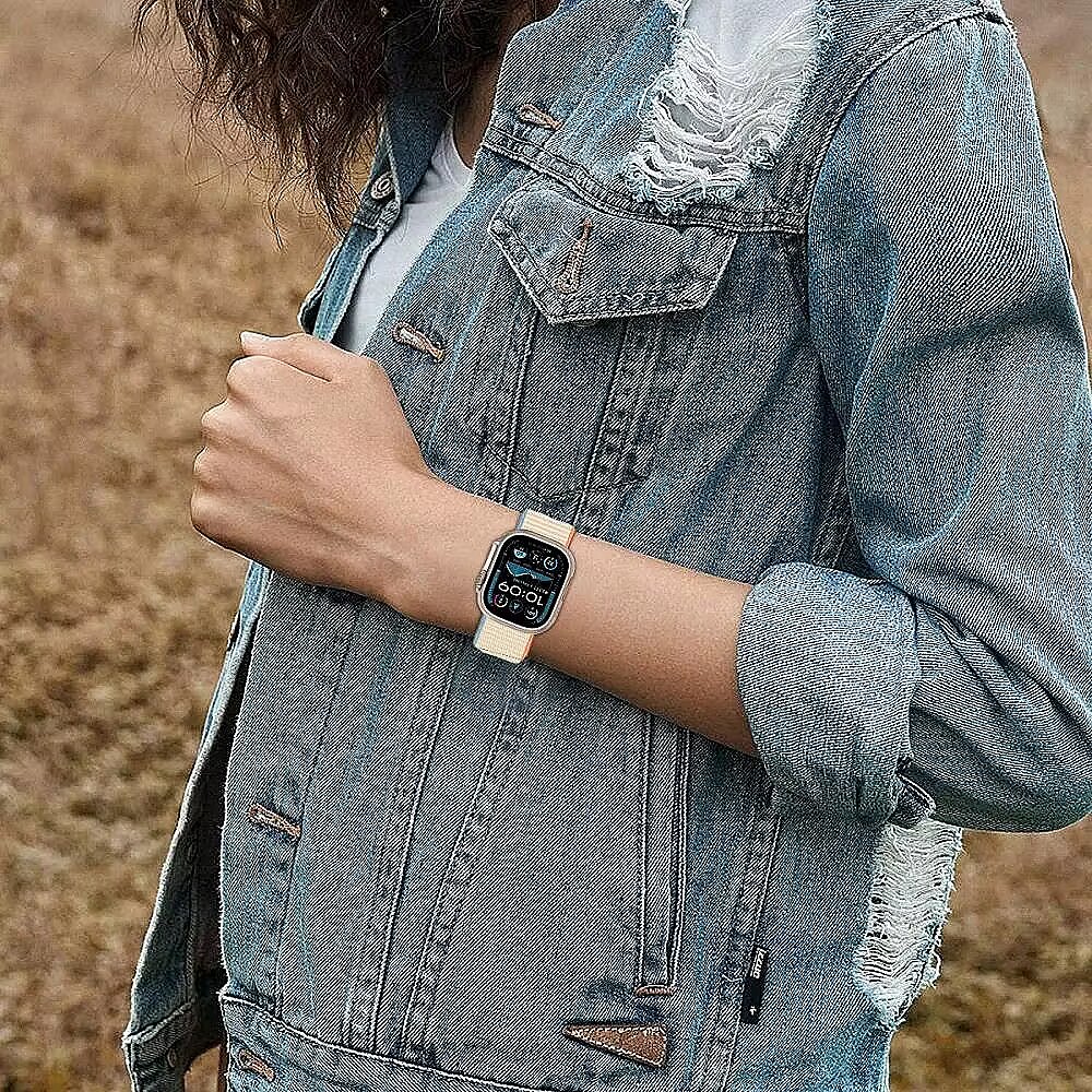 description_et - Sobita nutikell oma isikliku stiiliga – vali lemmikvärv või vaheta rihma vastavalt meeleolule ja riietusele. See mugav tekstiilist kellarihm on loodud Apple Watch nutikelladele. Punutud nailonist disain laseb nahal hingata ja on meeldiv kanda igapäevaselt. Hõlpsalt reguleeritav disain teeb selle sobivaks igale randmesuurusele. Sobib Apple Watch 40 mm, 41 mm ja 42 mm mudelitele korpusega nutikelladele Valmistatud punutud nailonist – mugav ja hingav disain Hõlpsalt reguleeritav disain teeb rihma sobivaks igale randmesuurusele Lihtne kellale kinnitada ja vahetada Ühilduvad mudelid: Apple Watch 4 40mm Apple Watch 5 40mm Apple Watch 6 40mm Apple Watch SE 40mm Apple Watch SE 2 40mm Apple Watch SE 3 40mm Apple Watch 7 41mm Apple Watch 8 41mm Apple Watch 9 41 mm Apple Watch 10 42mm Apple Watch 11 42mm