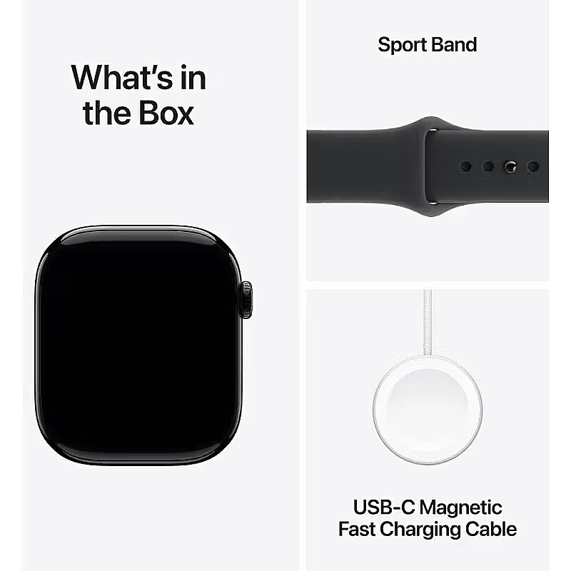 description_en - Apple Watch 11 keeps pace with your life and keeps an eye on your health. Designed to be worn 24/7: The watch design is thinner and lighter, yet more durable than before — aluminum models now have Ion-X glass, which is 2x more scratch-resistant. Watch 11 brings important health updates like hypertension alerts and improved sleep assessment and longer battery life — all intelligently synced with your iPhone. Comprehensive health tracking: ECG, blood oxygen level, sleep analysis with sleep score, and high blood pressure notifications to help detect signs of chronic high blood pressure. Sensitive sensors: Dual combined heart rate sensors, blood oxygen sensor, temperature sensor, accelerometer, gyroscope, altimeter, and depth sensor up to 6 m. They enable more detailed fitness and health data. Battery lasts up to 24 hours of regular use and up to 38 hours in low power mode Fast charging — up to ~8 hours of use in 15 minutes and ~80% charge in just ~30 minutes Always-On Retina OLED LTPO3 display with up to 2000 nits peak brightness Ion-X glass with new ceramic coating is 2x more scratch-resistant Waterproof to 50m and dustproof to IP6X New watchOS Workout Buddy and additional workout views, Heart Rate Zones, customizable workouts, running and cycling metrics, automatic course splitting, swimming features (SWOLF, stroke detection), multisport support Connectivity and security: GPS, Bluetooth 5.3, WiFi 2.4/5 GHz, Ultra Wideband chip, Apple Pay, Emergency SOS, fall and accident detection, and Backtrack navigation Faster hardware and storage: powerful processors and larger internal storage ensures smoother operation and longer software support Eco-friendly design: the watch is made from up to 40% recycled material 100% recycled aluminum Health Know your body by heart.