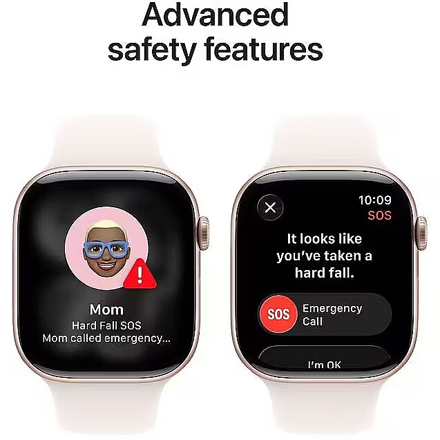Packed with innovative safety firsts, Apple Watch Series 11 has your back. It’s designed to summon help when you need it most — even if you can’t reach your iPhone. Emergency SOS. ASAP. Need urgent help? Just press and hold the side button on your Apple Watch Series 11 to try to call emergency services and share your location. Fall Detection at the ready. If Series 11 detects that you’ve taken a hard fall, it can automatically help connect you with emergency services, provide dispatchers with your location, and notify loved ones. Crash Detection. Your guardian on the go. If you’ve been in a severe car crash, Series 11 can automatically help call emergency services, share your location, and notify your emergency contacts.