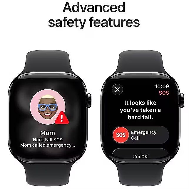Packed with innovative safety firsts, Apple Watch Series 11 has your back. It’s designed to summon help when you need it most — even if you can’t reach your iPhone. Emergency SOS. ASAP. Need urgent help? Just press and hold the side button on your Apple Watch Series 11 to try to call emergency services and share your location.