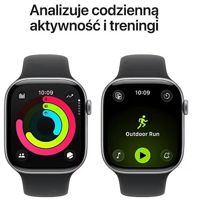 Im więcej wiesz o swoim zdrowiu, tym skuteczniej możesz się o nie zatroszczyć. Z Apple Watch Series 11 masz jego pełniejszy obraz. Dzięki apkom takim jak EKG i Parametry życiowe możesz na bieżąco monitorować swój stan. A przełomowa funkcja Powiadomienia o nadciśnieniu to nieocenione wsparcie w profilaktyce zdrowego serca. Powiadomienia o nadciśnieniu Nadciśnienie dotyka ponad 1,3 miliarda osób na całym świecie i stanowi główną przyczynę zawału serca, udaru czy chorób nerek. Nie daje objawów, więc często nie zostaje zdiagnozowane. Bywa przeoczone nawet podczas wizyty lekarskiej, ponieważ w jej trakcie dokonuje się zwykle tylko jednego pomiaru ciśnienia. Aby otrzymywać powiadomienia o nadciśnieniu, wystarczy nosić zegarek przez minimum 30 dni. Series 11 da Ci znać, jeśli zauważy symptomy możliwego nadciśnienia. Jak to działa? Czujnik optyczny gromadzi dane, które następnie analizowane są przez algorytm pod kątem ewentualnego nadciśnienia. W tym celu sprawdza się reakcje naczyń krwionośnych na bicie serca przez okres 30 dni. Zupełnie nowe spojrzenie. Twarde naukowe podstawy. Powiadomienia o nadciśnieniu to przełomowa funkcja, która została stworzona w oparciu o zaawansowane metody uczenia maszynowego oraz serię badań naukowych. Wzięło w nich udział ponad 100 000 osób. Ostatnim krokiem było sprawdzenie funkcji podczas badań klinicznych. Twój dziennik pomiarów ciśnienia tętniczego. Po otrzymaniu powiadomienia o nadciśnieniu możesz zacząć prowadzić dziennik pomiarów w aplikacji Zdrowie na iPhonie. Będziesz potrzebować do tego ciśnieniomierza. Twój dziennik ułatwi komunikację z lekarzem prowadzącym. Więcej funkcji wspierających zdrowie Sprawdź jakość snu na dzień dobry. Wpływają na nią takie czynniki jak długość snu, regularne zasypianie, liczba przebudzeń i czas przypadający na każdą fazę snu. Funkcja Wynik snu każdej nocy analizuje te czynniki, a rano przedstawia podsumowanie w formie czytelnego raportu. W ten sposób dowiesz się, co dokładnie wpływa na jakość Twojego snu, oraz jak sprawić, żeby był bardziej regenerujący. Nie przymykaj oka na bezdech senny. Polega on na powtarzających się epizodach zatrzymania oddychania podczas snu. Nieleczony bezdech senny może zwiększyć ryzyko nadciśnienia, cukrzycy typu 2, chorób serca oraz innych problemów zdrowotnych. Series 11 monitoruje zaburzenia oddychania podczas snu i powiadamia o możliwym bezdechu sennym. Apka Parametry życiowe. Wgląd w Twój codzienny stan zdrowia na cito. Szybko sprawdzisz w niej dane zarejestrowane w nocy, w tym tętno, częstość oddechów, temperaturę nadgarstka, natlenienie krwi czy długość snu. Dostaniesz też powiadomienie, jeśli wartości będą odbiegały od normy. Aplikacja EKG. Serce na dłoni. Apka EKG w Series 11 pozwala wykryć objawy migotania przedsionków oraz oznaki nieregularnego rytmu serca. Pomiary wykonywane są prosto z nadgarstka na podobnej zasadzie jak w elektrokardiografie jednoodprowadzeniowym. Z aplikacją Tętno trzymasz rękę na pulsie. Sprawdzisz go w dowolnej chwili. Otrzymasz również powiadomienia, gdy tętno będzie zbyt wysokie lub zbyt niskie, a także w przypadku wystąpienia arytmii. Śledzenie cyklu pozwoli Ci być na bieżąco. Każdy cykl menstruacyjny jest inny. Obserwując swój, dobrze poznasz jego rytm. Funkcja Śledzenie cyklu pozwoli Ci zapisywać przebieg miesiączki i towarzyszących jej objawów. Otrzymasz przewidywaną datę kolejnego okresu oraz dni płodnych. Funkcja powiadomi Cię również w razie nietypowego przebiegu cyklu. Szacunkowy czas owulacji na podstawie wcześniejszych danych. Series 11 ma zaawansowany czujnik, który monitoruje Twoją temperaturę w czasie snu. Apka Śledzenie cyklu na podstawie tych danych wyznaczy prawdopodobny czas owulacji. Informacje te są niezwykle pomocne w planowaniu rodziny. Pomiar natlenienia krwi. Zapierająca dech innowacja. Apple Watch Series 11 wyposażono w czujnik i apkę, które mierzą natlenienie krwi zarówno wtedy, gdy chcesz to sprawdzić, jak i w tle. Dniem i nocą. Kto zna wyniki, ten ma wyniki Niezależnie od tego, czy chcesz poprawić swoje wyniki na bieżni czy na basenie, Apple Watch Series 11 pomoże Ci w treningu na niezliczone sposoby. Urządzenie mierzy każdy Twój ruch, analizując wiele przydatnych parametrów. Bo gdy wiesz więcej, osiągasz więcej. Brzmi sprytnie? No to zaczynamy! Rozpocznij trening jednym kliknięciem. Odświeżona apka Trening. Zaskakuje formą. W jej udoskonalonym interfejsie znajdziesz umieszczone w rogu cztery nowe przyciski. Zapewniają szybszy dostęp do takich funkcji jak: Tempo bazowe, Wyścig na trasie i Trening własny. Rób kolejne okrążenia Pierścieni aktywności. W ruchu, Ćwiczenie, Na nogach. W apce Aktywność animacja domykania pierścieni odwzorowuje to, jak się poruszasz. Możesz także wstrzymywać pierścienie i dostosowywać swoje cele na każdy dzień tygodnia. Wspiera biegaczy na każdym poziomie Niezależnie od tego, jakie są Twoje biegowe cele, dzięki zaawansowanym funkcjom Apple Watch osiągniesz je z łatwością. Wytrzymała bateria, precyzyjny GPS i motywujące funkcje, które pozwalają na bieżąco śledzić treningi, zapewnią Ci idealny start. Czas na Twoją nową życiówkę. Obciążenie treningowe sprawdzisz lekką ręką. Dzięki pomocnym analizom masz lepszy wgląd w to, jak intensywność treningów wpływa na Twoje ciało. Będziesz wiedzieć, kiedy dokręcić śrubę, a kiedy odpocząć. Stwórz swój własny trening. Dopasuj ćwiczenia do własnych potrzeb na Apple Watch albo iPhonie. Możesz modyfikować cele, np. czas aktywności, dystans czy liczbę spalanych kalorii. Otrzymasz także alerty dotyczące tempa, tętna, kadencji i mocy. Twoje dane treningowe na iPhonie. Pomiary wykonane przez Series 11 podczas treningu znajdziesz w aplikacji Fitness na iPhonie. Prześledzisz tam swoje postępy i ukończone treningi, zmo
