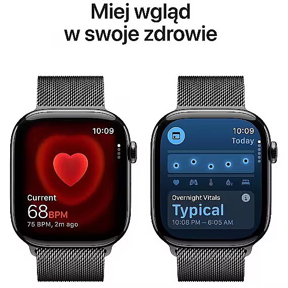 Description - Get to know it from every angle Refined design. The Series 11 is the slimmest Apple Watch. You can comfortably wear it all day, even while sleeping, which makes monitoring vital signs easier. Greater battery performance. Tireless battery, sufficient for up to 24 hours of normal use on a full charge. And up to 8 hours with just 15 minutes of charging. Advanced sensors. When it comes to health, you can always keep your finger on the pulse. The Apple Watch Series 11 uses innovative sensors, including two that measure heart rate and wrist temperature. Durable IonX display. The Series 11 display is twice as scratch-resistant as the Series 10 display and ready for everything the day brings. Water and dust resistance. The Apple Watch Series 11 has a WR 50M water resistance rating, making it perfect for the pool or sea up to 6 meters deep. And the IP6X standard makes it completely dustproof. About your heart health The more you know about your health, the more effectively you can take care of it. With the Apple Watch Series 11, you get a fuller picture. With apps like ECG and Vital Signs, you can monitor your condition in real time. And the groundbreaking High Blood Pressure Notifications feature is invaluable for heart health prevention. High Blood Pressure Notifications High blood pressure affects over 1.3 billion people worldwide and is a leading cause of heart attack, stroke, or kidney disease. It shows no symptoms, so it often goes undiagnosed. It can even be missed during a doctors visit, because usually only one blood pressure measurement is taken. To receive high blood pressure notifications, you only need to wear the watch for a minimum of 30 days. The Series 11 will let you know if it detects symptoms of possible high blood pressure. How does it work? The optical sensor collects data, which is then analyzed by an algorithm for possible hypertension. To do this, it checks the response of blood vessels to heartbeats over a 30-day period. A completely new perspective. Solid scientific basis. High Blood Pressure Notifications is a groundbreaking feature created using advanced machine learning methods and a series of scientific studies. Over 100,000 people participated in these studies. The final step was testing the feature in clinical trials. Your blood pressure log. After receiving a high blood pressure notification, you can start keeping a log of measurements in the Health app on your iPhone. You will need a blood pressure monitor for this. Your log will make communication with your doctor easier. More health-supporting features Check your sleep quality first thing in the morning. Sleep quality is influenced by factors like duration, consistent bedtime, number of awakenings, and time spent in each sleep phase. The Sleep Score feature analyzes these factors every night and presents a summary in the morning in an easy-to-read report. This way, youll know exactly what affects your sleep quality and how to make it more restorative. Dont ignore sleep apnea. It involves repeated episodes of stopped breathing during sleep. Untreated sleep apnea can increase the risk of high blood pressure, type 2 diabetes, heart disease, and other health problems. The Series 11 monitors breathing disturbances during sleep and alerts you to possible sleep apnea. Vital Signs app. Get insight into your daily health at a glance. You can quickly check data recorded overnight, including heart rate, respiratory rate, wrist temperature, blood oxygen, and sleep duration. You will also receive a notification if values fall outside normal ranges. ECG app. Heart in the palm of your hand. The ECG app in Series 11 can detect signs of atrial fibrillation and irregular heart rhythms. Measurements are taken directly from the wrist in a similar way to a single-lead electrocardiogram. With the Heart Rate app, keep your finger on the pulse. You can check it anytime. Youll also receive notifications if your heart rate is too high or too low, or if arrhythmia occurs. Cycle Tracking keeps you up to date. Every menstrual cycle is different. By observing yours, youll better understand its rhythm. The Cycle Tracking feature lets you record your period and accompanying symptoms. Youll receive a predicted date for your next period and fertile days. The feature will also notify you of unusual cycle patterns. Estimated ovulation time based on previous data. The Series 11 has an advanced sensor that monitors your temperature while you sleep. The Cycle Tracking app uses this data to determine the probable ovulation time. This information is extremely helpful for family planning. Blood oxygen measurement. A breathtaking innovation. The Apple Watch Series 11 is equipped with a sensor and app that measure blood oxygen both when you want to check and in the background, day and night. Who knows the results, gets results Whether you want to improve your treadmill or swimming performance, the Apple Watch Series 11 will help you train in countless ways. The device tracks every movement, analyzing many useful parameters. Because the more you know, the more you achieve. Sounds clever? Lets get started! Begin your workout with one click. Refreshed Workout app. Surprising in form. Its improved interface includes four new corner buttons, providing faster access to features like Base Pace, Route Race, and Custom Workout. Complete another lap of your Activity Rings. Move, Exercise, Stand. In the Activity app, the ring-closing animation reflects your movement. You can also pause rings and adjust your goals for each day of the week. Supports runners at every level No matter your running goals, the Apple Watch helps you achieve them easily. Durable battery, precise GPS, and motivating features that allow real-time tracking give you the perfect start. Time for your new personal record. Training load at a glance. With helpful analyses, youll better understand how workout intensity affects your body. Youll know when to push harder and when to rest.