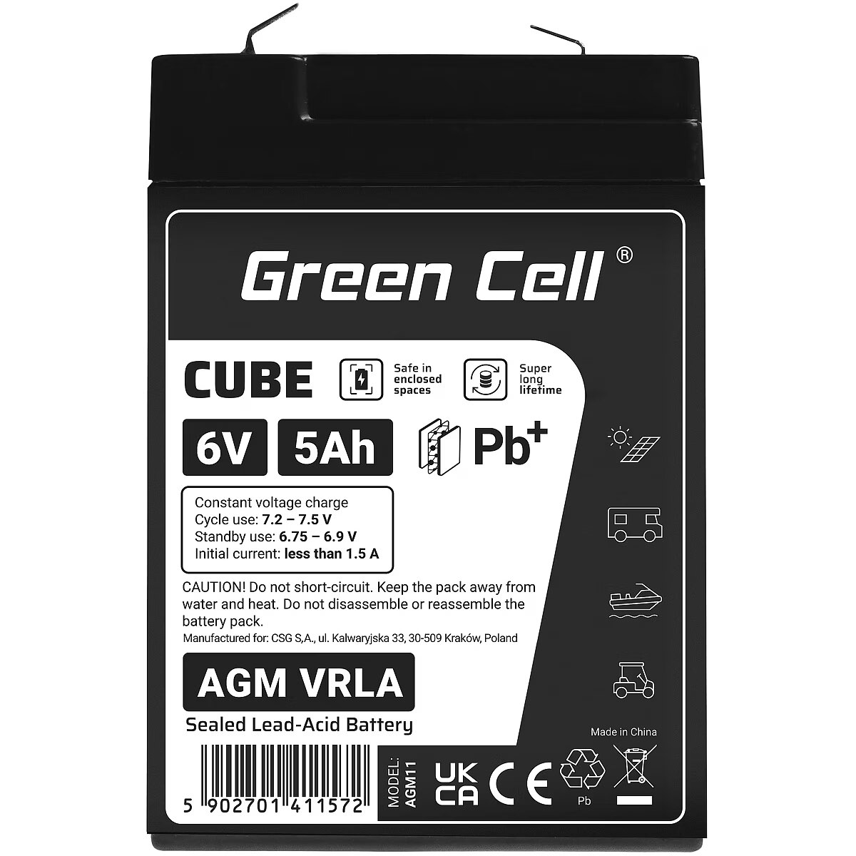 Green Cell CUBE AGM IP54 6V 5Ah VRLA Battery Gel deep cycle toys for kids alarm systems