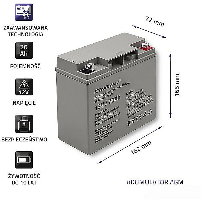 While performing daily activities or being at work, you certainly use devices that need electricity to function properly. Some of them draw power from the grid and are exposed to voltage fluctuations or power outages. For smooth operation, it is necessary to have an emergency power source. These include: alarm and monitoring systems, emergency lighting, medical equipment, scales and cash registers. Others have internal combustion engines and rely solely on battery power. Among them are: quads, forklifts, scooters, boats, campers. To provide them with a stable and safe power source, we have prepared a wide range of solutions. Check out Qoltec's offer of AGM batteries and choose the variant that best suits your needs.