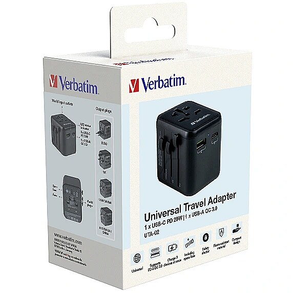 URL - https://www.verbatim-europe.com/en/plugs-and-travel-adapters/products/universal-travel-adapter-uta-02-plug-with-usb-c-pd-usb-a-qc-ports-49544