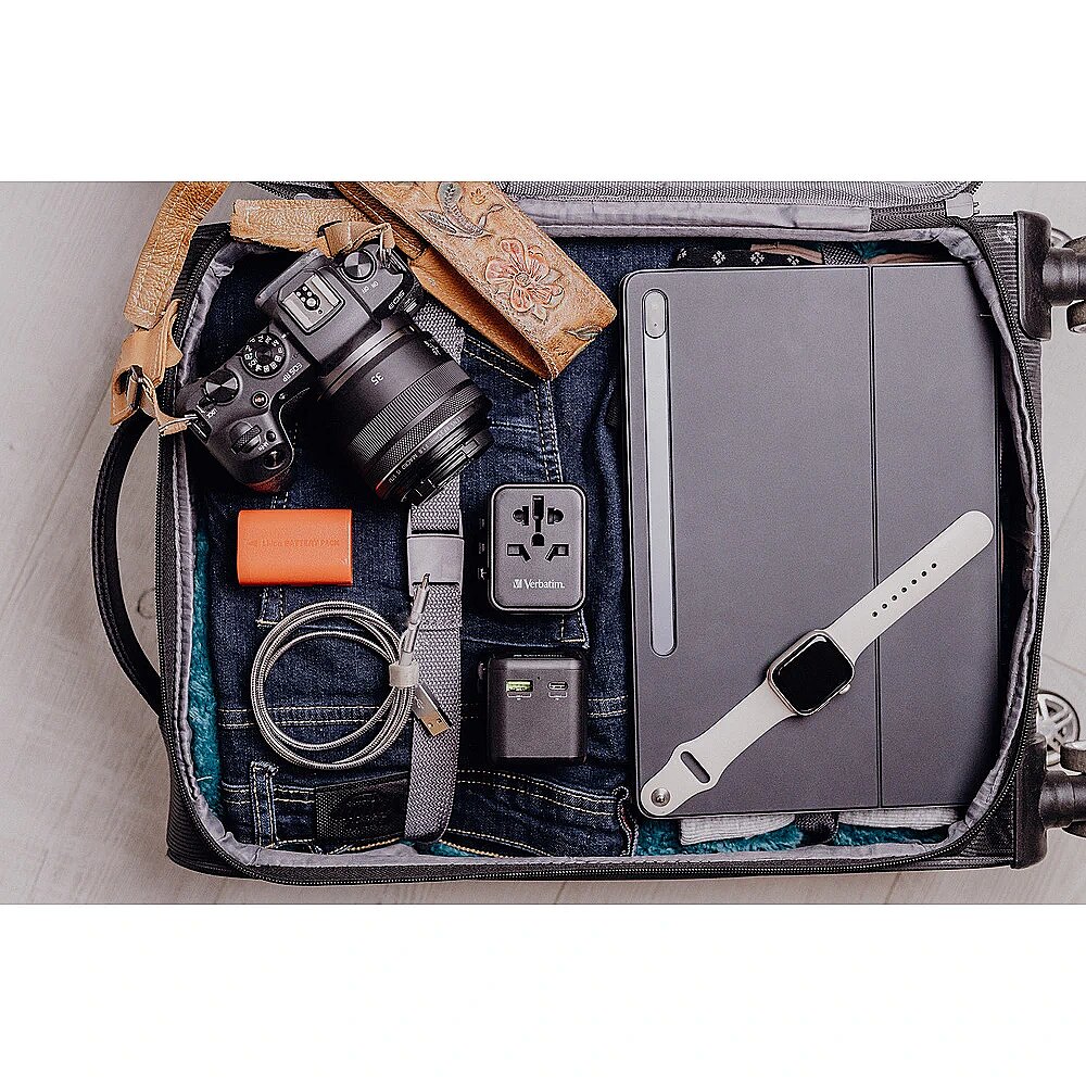 The Verbatim Universal Travel Adapter can be used in more than 180 countries take it everywhere with you and never be out of power. This world-to-world multi plug will allow you to connect to any local power supply around the world and recharge your power-hungry devices, like laptops and camera batteries. The USB-C and USB-A ports on the bottom can charge all your USB devices including smartphones, Bluetooth speakers, tablets, power banks, and Kindles. Superfast 3-in-1 charging The compact and powerful Universal Travel Adapter allows 3 devices to be charged simultaneously through the AC power socket and the USB-A and USB-C ports.